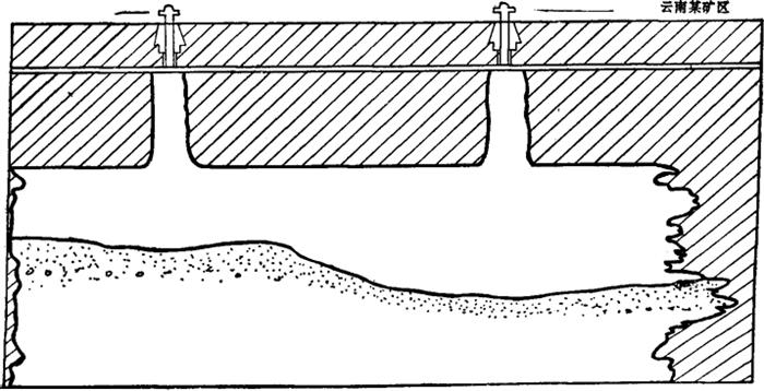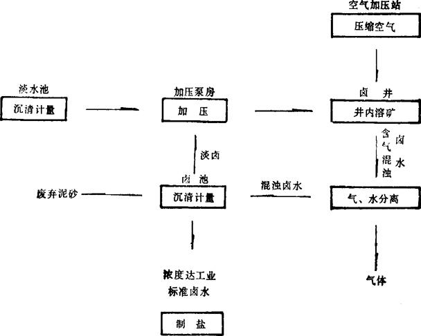 释义 | 气垫法 原理与油垫法一样,只是垫层介质采用气体,工艺流程增加空压机加压措施。 (一)实用条件 多用于矿层厚度大(50~100m)、矿石品位较低(NaCl含量30~70%)、不溶物含量高的岩盐。目前我国云南某矿采用此法在坑道内进行井下开采。优点是带砂能力强,能获得高浓度的卤水,单井生产能力较高。缺点是形成的垫层难以控制,若操作不当容易造成埋管、断管等井下事故。 (二)工艺流程 基本与油垫法相似。用空压机将压缩空气注入生产套管与中层管间环隙,形成气垫层,采用正循环操作建槽,返出的气、卤混合物通过分离器进行分离;不时采取高压、大排量注水或注气措施,排出井底泥砂和其他不溶物碎屑。工艺流程见图3-3-46。 图3-3-46 气垫工艺流程简图 (三)井身结构及主要生产设施 井身结构与油垫井相同,通常仍用三层同心圆管串组合。云南所用管材的规格为:生产套管Φ219×9mm;中层管Φ108×4.5mm;中心管Φ76×4.5mm。用接箍连结。生产套管用水泥浆封固,固井质量和密封性能应经试压检查合格。井口装置与油垫法相同(目前下井管材已推广选用第二章所述的套管)。 生产设施除进出水管线、泵房、计量仪表、储卤池等外,另有空气加压设施。 总的看来,盐井结构和生产设施简单,安装及操作方便,与油垫采卤工艺相似。不同之处是生产套管与中层管的间隙大,以利于气垫层的形成和起到排砂的效果。 (四)建槽与生产 开采中、低品位岩盐矿必须有一个具备一定高度和一定暴露面积的溶腔,作为上溶生产卤水和堆存泥砂等不溶物之用。因此,在建槽期应尽可能合理地加快溶蚀速度,多带出所产生的泥砂,力争在短时间内建成合格的盐槽。 1.建槽阶段,常用的方法有3种: (1)气垫小对流法 即在生产套管与中层管环隙注入气体(空气或天然气),中层管与中心管环隙注入淡水,中心管出卤生产。此法多在盐槽容积小于30m3时采用。优点是安装设备、调整管位及处理事故比较方便,盐槽溶蚀速度快,带砂能力强。缺点是随着盐槽直径逐渐增大,溶蚀速度逐渐下降,带砂能力也逐渐减弱;盐槽底溶蚀角逐渐增大,气垫不易控制;易造成压缩空气消耗多,稍不注意就形成上溶,发生埋管事故。 (2)气垫喷射法 当盐槽容积达到30m3左右时,在循环管路下端安装喷嘴,加大两口距,采用气垫喷射法建槽。 此法与气垫小对流法比较,优点是盐槽底角小(气垫小对流法底角30°左右,喷射法底角18~20°),矿石利用率高,服务年限长,在喷嘴的有效射程内溶蚀快,建槽时间短。缺点是盐槽直径超过喷射有效射程时,溶蚀慢;设计时要求数据准确,下管和换管不便;如果密封不好,会造成喷嘴失效,进水短路;若操作不当,喷嘴易被砂堵。 (3)静溶扩槽法 井眼生产间隙及检修设备期均可采用。即在盐槽内不加气垫,淡水经中心管或中层管进入盐槽后,使液面在预定位置溶解。与上述两种方法比较,优点是节省了人力物力,充分利用了时间,减少了空槽;缺点是产生的不溶物几乎全部堆积在盐槽内,易产生埋管,水位不易控制在预定位置,溶蚀速度比较小,必需在具有一定的溶积后方能使用。 2.生产阶段 建槽期的溶腔形成后,进行上溶生产。工艺流程分间断上溶和分段连续上溶。 (1)间断上溶生产 卤水的生产方式是周期性的。特点是井内无气垫,仅需生产套管和中层管两层。作法是将淡水加压、经水表计量后,注入井内,溶解盐槽顶部和侧壁,获浓度达24°Be′以上的饱和卤水;然后从生产套管与中层管环隙向井内灌注压缩空气,直至把卤水全部从中层管内替出;返出卤水经计量储集,输往制盐厂;最后将压缩空气全部放出,完成一次生产周期。如此循环进行,以获得高浓度卤水。 企业在生产活动中,为了降低卤水成本,一般都要求缩短建槽时间,尽快生产成品卤水;但过早的连续生产成品卤水,又易引起埋管、盐槽底角大、矿石利用率低等问题。实际生产中,根据经验,一般当盐腔容积达到350~400m3时,即可转入间断上溶,生产成品卤水。 (2)分段连续上溶生产 当盐槽上溶生产,容积扩大到800m3以上、高度达4.5m以上时,可进行分段连续上溶生产。井身结构为三层管,生产时从生产套管与中层管环隙送入压缩空气,作气垫层,使水位保持一定位置,卤水每天连续排出。此法可分段开采多层岩盐,提高采收率。 (3)井组建槽连通生产 通过上述两种工艺生产,扩大溶腔直径,达到两井或多井连通;然后采用一井注水,一井出卤,连续生产。优点是井下事故少,产量、质量高,成本低,卤井的服务时间长。实际效果与油垫建槽连通生产相同。生产形成的溶腔见图3-3-47。 图3-3-47 双井通腔分别连续上溶生产卤水最后溶腔形态示意图 |