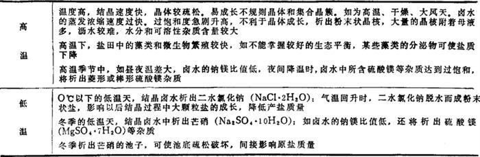 气温高低对原盐质量的影响较为复杂,影响较为明显的主要是极端气温与温差。各种情况如表2-3-7。