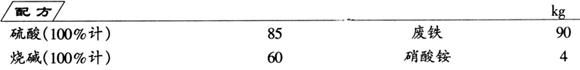 首先将废铁与硫酸作用生成硫酸亚铁,再与烧碱作用制成晶核,在晶核悬浮液中加入硫酸亚铁溶液与铁屑,经加热氧化而成氧化铁黄。
