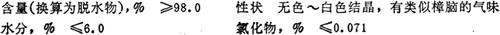 释义 | 氯代丁醇 别名 氯惹酮、三氯特丁醇、1,1,1-三氯-2-甲基丙醇-〔2〕 结构式 CH3C(CH3)(OH)CCl3 分子量177.46 性能 白色晶体。熔点80℃,沸点167℃,稍溶于水,能溶于醇或醚。 质量规格(JSCⅠ-Ⅱ) 用途 用作防腐药、麻醉药。 |