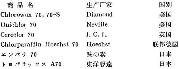 释义 | 氯化石蜡 【释文】: 用途 含氯量40~60%的氯化石蜡主要作增塑剂使用(参见增塑剂一章)。含氯量为70%的氯化石蜡可作为添加型阻燃剂。其外观为淡黄色透明树脂状粉末。相对密度1.60~1.70(25℃)。软化点95~105℃。适用于聚氯乙烯、聚苯乙烯、聚烯烃、聚酯、聚氨酯、酚醛树脂等多种塑料,通常与等量的氧化锑配合使用,用量为10~20%。 国内生产厂 辽宁省沈阳化工厂 上海电化厂 国外商品名 |