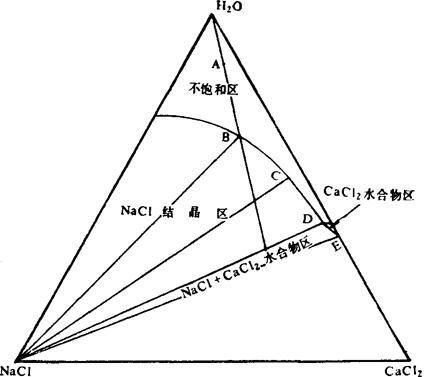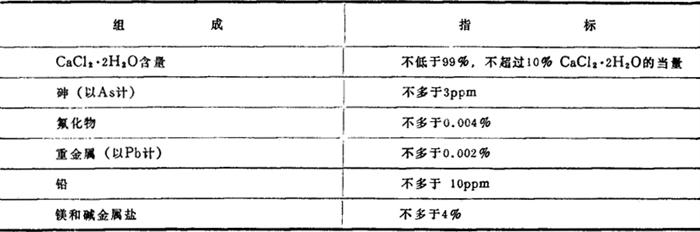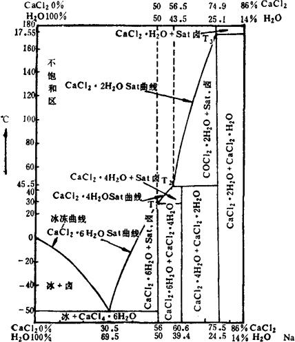 一、物理性质 氯化钙的化学成分,按重量计算,由63.94%的氯和36.06%的钙组成。由图1-1-8可以看出,除无水物外,还有6水物、4水物、2水物和1水物。图中-50.66℃是冰和CaCl2·6H2O低共熔点,全部固相化;-50.66℃~29.9℃、29.9℃~45.3℃、45.3℃~176℃、176℃~187℃、187℃~782℃,分别是CaCl2·6H2O,CaCl2·4H2O,CaCl2·2H2O,CaCl2·H2O和CaCl2无水盐结晶区。在常温下6水物或4水物是稳定的。 图1-1-8 CaCl2-H2O体系相图 E-低共熔点 T1,T2,T3-水合物转化点 我国氯化钙资源来自制碱废液,浓度约15°Bé,其成分为:CaCl2约10%,NaCl2约4%,H2O约86%。氯化钠和氯化钙之间的理化关系,见图1-1-9。图中A点是体系组成点,位于不饱和区。因此需先在盐场内利用自然蒸发浓缩,到B点时,溶液浓度约为29°Bé,NaCl先饱和析出;进一步蒸发,到达C点,浓度约为35°Bé,NaCl已析出85%以上。再移到室内加热蒸发,液相点接近NaCl与CaCl2水合物共饱点D点,NaCl大部分析出,所剩很少;继续蒸发,液相点到达终止点E时,仅剩CaCl2成分,可采取控制水量、保温分离、冷却结晶方法,析出市场所需要的氯化钙水合物。 图1-1-9 Na+、Ca/C1-H2O 25~125℃ 氯化钙从空气中吸收水分的速度,决定于空气中水蒸汽分压超过氯化钙蒸汽的大小。例如空气中相对湿度为40%、95%情况下,1g二水氯化钙分别吸水1g和14g,1g无水氯化钙分别吸水1g和17g。无水物和四种水合物的物理性质如下: 注:①来源于道化学公司,②解离大气压为101.3Pa 再将氯化钙无水物、2水物其他物理性质,择述如下。 (一)无水氯化钙 为白色或灰白色固体(粉状、块状或粒状),味微苦无嗅。易溶于水,同时放出大量的热。在常温下由水溶液中结晶析出的常为6水物。把这种6水盐渐渐加热到30℃,则溶于结晶水中;继续加热、渐渐失水,到200℃时,变为二水物;再加热到260℃,则变为白色多孔的无水氯化钙。这时因水与无水氯化钙作用,亦有CaO生成。氯化钙水溶液凝固点低,在冷藏工业中有很大用途。氯化钙潮解性强,类似氯化镁。氯化钙也溶于醇、丙酮、醋酸、甲酸、肼、吡啶、乙酰胺。 压缩系数: 体膨胀系数:固体 20~15℃ 0.67×10-4; 40.9%水溶液 20℃ 0.458×10-3; 水溶液相对密度: 固体相对密度: 生成自由能298 -748.1kJ/(mol·K);熵298 104.6J/(mol·K); 磁化率 -54.7×10-6c.g.s.制电磁单位; 蒸气压: 水溶液粘度: 熔融物粘度η 800℃ 0.0425P 850℃ 0.0365P 水溶液表面张力:25℃与空气接触时 熔融盐表面张力 熔点下与空气接触时 0.00152N/cm; 摩尔体积 50.3cm3/mol; 晶格常数 a=0.621,b=0.64,c=0.413nm; 氯化钙在盐酸中的溶解度: 0℃时 在有机溶剂中的溶解度: 注:SP 溶液平衡时溶质与溶剂的摩尔比 S 100g溶剂溶解溶质的最大克数 S′ 100g饱和溶液中含溶质的重量(g) ( ) 表示在固相转移点下的溶解度值 〔 〕 表示在熔点下的溶解度值 熔点 772℃; 沸点 1600℃以上; 比热: 熔融物比热: 溶解热 25℃ -82.84kJ/mol; 熔融热 28367±335J/mol; 生成热(元素) 795kJ/mol; 升华热 0.018托尔,661.4℃ 226kJ/mol; 水合热 90.79J/mol; 折射率 介电常数 5.85; 熔融盐电导率: (二)2水氯化钙 白色颗粒状结晶,味苦涩,潮解强,易溶于水,能溶于醇,但不易溶于醚。水溶液呈中性或微碱性反应,具有腐蚀性。其他物理数据如下: 蒸气压 溶解热 18℃lmol CaCl2·2H2O溶于400mol水,41.84kJ/mol; 水合热 1水物水合成2水物,8.37kJ/mol; 生成热 标准条件下元素,1403.73kJ/mol; 相对湿度: 相对密度: 1.385 蒸气压: 水中溶解度: 水溶液的冰点(CaCl2·2H2O含CaCl275%): 溶解热 18℃,1mol CaCl2·2H2O溶于 400mol水 -41.84kJ/mol; 生成热 标准条件下,元素 1404kJ/mol; 水合热 1水物水合成2水物 8.37kJ/mol; 相对湿度 折射率 nα=1.531,nβ=1.534,nγ=1.537 二、化学性质 氯化钙与各种盐类化学反应,前已提及很多,如除硫、除硝等。关键问题是把这些反应如何结合起来,在盐碱工业精制卤水方面取得更大的经济效果。 氯化钙与乙醇和氨作用,分别生成CaCl2·4C2H5(OH)和CaCl2·8NH3。还有一些不常见的化学反应,如:氯化钙加入溴水中,即生成氯二溴化钙:CaCl2+2Br2→Ca(C1Br2)2;氯化钙加热到赤热时,与过量水蒸汽作用,即产生氯化氢和氢氧化钙; 氯化钙与硫酸钡和煤在770~1100℃高温下进行反应,则生成氯化钡:BaSO4+4C+CaCl2→BaCl2+CaS+4CO 三、用途 国外冬季气温低的国家,氯化钙的最大用途是公路溶冰、溶雪,控制尘埃、稳定土壤;其次是用在生产混凝土产品以及石油井钻建维修运转等方面;氯化钙冰点低,加入水泥中可防止结冻,加速硬化,无水氯化钙可用作干燥剂。此外,加入下列物质中,其作用为: 食品级氯化钙,可用于加工乳酪和其他乳制品以及药物的生产。在橡胶制造上,可作凝析剂,混合淀粉糊作上胶剂;还可用于有色金属冶炼,电解制金属钙,处理锅炉水,作灭火剂,防止木材、煤炭、纺织品等火灾事故。 美国年用氯化钙约近百万吨。各方面所占比例:冰雪除去30%,灰尘控制、道路稳固25%,工业用15%,石油天然气钻井液10%,混凝土5%,铺路用碴4%,其他11%。 四、质量标准 我国的质量标准见表1-1-34,美国和前苏联的质量标准见表1-1-35~1-1-37。 表1-1-34 我国氯化钙企业标准 表1-1-35 美国军用国家标准Mil-C-51511A-85,工业规格 表1-1-36 美国联邦电信委员会(F.C.C.)食品CaCl2·2H2O标准Ⅲ-81 表1-1-37 前苏联氯化钙国家标准ГОCТ450-77 |
