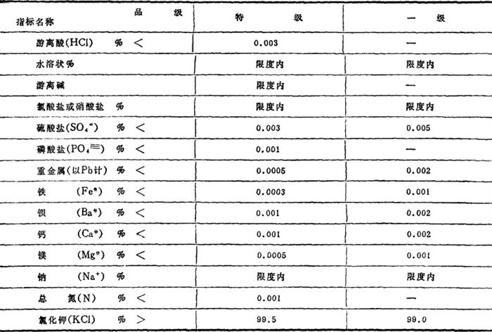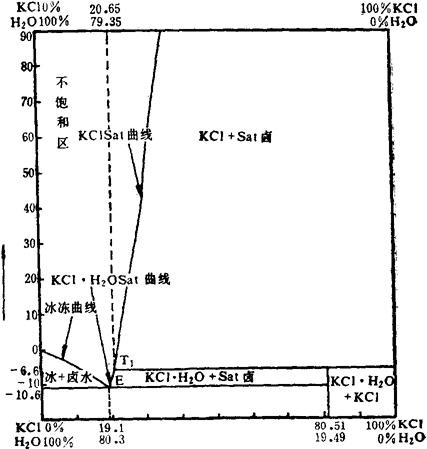 一、物理性质 氯化钾的化学成分是氯与钾,按重量计算,由46.99%的氯和53.01%的钾组成的。根据KCl-H2O体系相图分析(见图1-1-2),除无水盐外,还有一水盐。E点为冰与KCl·H2O低共熔点,温度为-10.6℃,其组成为KCl·H2O24.4%,冰75.6%;或KCl19.7%,H2O80.3%。T1点温度为-6.6℃,为KCl与KCl·H2O转化点,其组成为KC120.65%,H2O79.35%。从图可以看出,氯化钾的溶解度随温度上升而提高,当温度低于-6.6℃,KCl·H2O是稳定的。当温度高于-6.6℃时,KCl是稳定的。由于生产氯化钾的温度,即使是利用自然蒸发,气温也在30℃左右,不会出现KC1·H2O,故对生产并无影响。 图1-1-2 KCl-H2O体系相图 E-低共熔点 T3-KCl·H2O与KCl转化点 氯化钾为立方晶体,用溶解结晶法和浮选法制得的产品,一般为粉状,粒子直径分别小于0.75和0.15mm,色泽为白色或稍带粉红色。除细结晶外,还有大结晶(直径0.4~1.6mm)和颗粒状(直径0.17~3.3mm)。有吸潮性,易结块,如在产品中加少量脂肪酸胺可以防止。易溶于水,稍溶于乙醇,溶于乙醚、甘油和碱液中,不溶于浓盐酸和丙酮。其他物理数据如下: 折射指数 (η) 1.49 中和热(J/mo1)与Na(OH)中和 57.51 与K(OH)中和 57.53 密度 (g/cm3) 1.984 电离热 (J/mo1) 1.51 熔点 (℃) 770 离解热 (J/mo1) 769.44 沸点 (℃) 升华 1500 介电常数ε 0.001NKCl 1.103 生成热 (kJ/mol,25℃) -436.75 0.005NKCl 1.104 生成自由能 (kJ/mol,25℃) 电导率 (75℃,s/cm) 1.908 -409.15 磁化率 c.g.s制 电磁单位 -39×10 熵 (J/mol·k) 82.59 线膨胀系数 0.00003803 熔融热 (kJ/mol,25°) 26.82 体积膨胀系数(0~25℃) 0.000084 热容 (J/mol·k) 51.30 压缩系数 5.0×10-6MPa 比热 (13~46℃ J/mol·k) 0.72 弹性系数 Ec=3724,Ed=1960 溶解热 (kJ/mol) 18.41 粘度 (790℃) 1.42×10-3Pa·s 升华热 (kJ/mo1) 201.67 (920℃) 0.99×10-3Pa·s 气化热 (kJ/mol) 128.87 表面张力 0.000693N/cm 熔融液蒸汽压: 水溶液蒸汽压(Pa): 水溶液沸点: 水溶液导电率: 二、化学性质 现仅将与盐业生产有关的化学变化择列如下: 在含有氯化钾的海水、卤水中,加入二苦酰胺,则生成二苦酰胺钾沉淀、在0℃的水中,仅溶解0.0463%,故可提制出来,与钠、镁、钙等盐类分离,再加酸处理,生产相应的钾盐,二苦酰胺被回收反复利用。在冷却的卤水中加入高氯酸钠,则产生高氯酸钾沉淀,用热水溶解,通过钠型树脂转化为钾型树脂,用氯化钠、硫酸钠或碳酸钠溶液淋洗,得到相应的钾盐,并回收钠型树脂,再加利用。电解氯化钾可生产氢氧化钾和氯气,与氯酸钙起反应,生产氯酸钾;与硫酸镁、硫酸钠、硫酸或二氧化硫起反应,可生产软钾镁矾、硫酸钾。转化法由硝酸钠与氯化钾反应,直接法由硝酸与氯化钾起反应均可生产硝酸钾;与磷酸反应生产偏磷酸钾。 三、用途 氯化钾是重要工业原料,可制碳酸钾、氢氧化钾、硫酸钾、氯酸钾等,这些钾盐广泛地用在各个方面。氯化钾本身可作消焰剂,夜间可消灭枪口、炮口的火焰。在电解氯化镁制金属镁时,氯化钾常作为配制电解液的成分之一。在医药上作利尿剂、缺钾剂。在冶金、电镀、甚至照相等方面,都用氯化钾。在农业上氯化钾是重要肥料之一,能使农作物茎干粗壮,枝叶茂密,不易倒伏,并能增加抵抗病虫害能力,促进光合作用、增加作物产量质量。生产的氯化钾产品约有90%左右用在农业上。 四、质量标准 我国对于由光卤石和钾石盐经浮选法或热法加工制取的工、农业用氯化钾产品,国家标准局规定,应符合表1-1-7的要求: 表1-1-7 氯化钾的标准(GB 6549-86) 我国对于从制盐母液中提制的氯化钾产品,国家标准局规定,其化学指标应符合表1-1-8的要求。 表1-1-8 氯化钾(苦卤蒸发怯)标准(GB7118-86) 注:①氯化钾含量换算为湿应分别高于93.00;90.00:88.00。 ②浮选法制取的氯化钾产品水不物含量分别等于或小于0.10;0.15;0.20。 ③化合物(或离子)干基与湿基间按下式换算: 日本氯化钾(试剂用)国家标准JIS K8121-61(工业规格)见表1-1-9。 表1-1-9 日本氯化钾(试剂用)国家标准 JIS K8121-61(工业规格) |