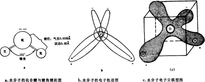 释义 | 水分子的极性与液态 水分子具有一种较强特性——极性,可加强分子之间的结合,以致必须增加更多的热能,才能使分子具有流动性(熔点)和分散性(沸点)。这是地球上的水大都以液态存在的原因。水分子之所以具有极性,主要由于氢、氧两原子在化合结构上存在电荷重心的偏离,使同一分子的两侧具有正负两种电荷,如图2-4-1。 图2-4-1 水分子的电子轨迹与模型图 分子极性大小以偶极矩表示,计量单位为第拜(D),水分子在常见溶液中是极性较强的分子,与其他溶液的比较见表2-4-3。 表2-4-3 水的极性与其他溶液比较 |