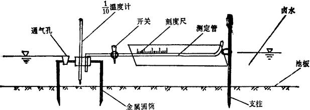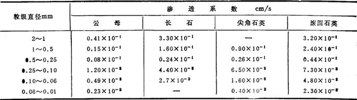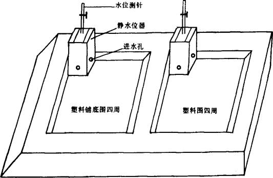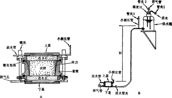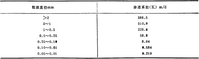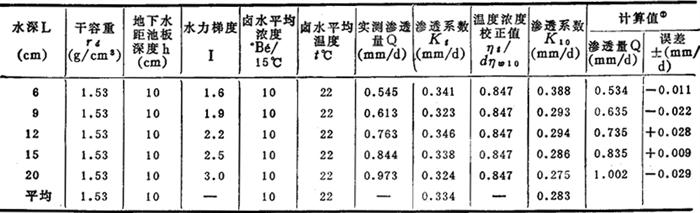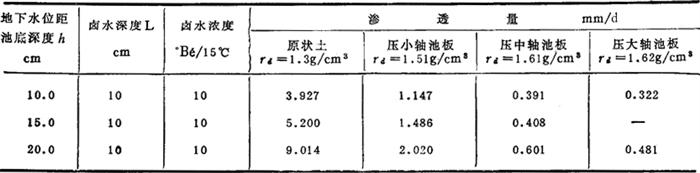 释义 | 水理性质 (一)稠度 1.稠度 表示粘性土随着含水量的变化而表现出各种不同的物理状态。几种基本稠度状态的主要特征如表2-2-9。 表2-2-9 稠度状态的主要特征 2.塑性指数 是土壤分类和评定池板强度及其稳定性的重要指标。塑性指数由流限与塑限之差求得。 Wn=WT-WP (2-2-23) 式中 Wn——塑性指数 WP——流限 WP——塑限 粘性土按塑性指数分类标准见表2-2-10。 表2-2-10 土壤按塑性指数分类 (二)毛细性 水通过土的毛细孔隙受毛细作用向各方向运动的性能。毛细上升高度随粒组直径的增加而降低,见表2-2-11。 表2-2-11 各种土的毛细上升高度 (三)透水性 1.土壤渗透规律 土的透水性是指土体透过水的性能。渗透系数是反映盐田土壤渗透性大小的重要物理指标。 渗透速度与水力梯度大小成正比,单位时间内渗透过土壤的水量与土壤断面积和土体两端的水头差成正比,和土层厚度成反比。其关系式如下: V=KI (2-2-24) Q=KIA (2-2-25) 式中 V——渗透速度,即单位时间、单位面积上所渗透的水量(cm/s或m/d) Q——单位时间内所渗透的水量(m3/d) A——通过水流的土体断面积(m2) K——渗透系数(cm/s m/d) I——水力梯度( 渗透系数是在标准温度(10℃或20℃)下蒸馏水在单位时间、单位土体断面积上的渗透量。因盐田渗透系数是在不同浓度卤水、不同温度下测定的,因此需按下式进行温度、浓度的订正: 温度订正: 式中 K10(或20)——10℃或20℃时蒸馏水的渗透系数(cm/s) Kt——实验温度时蒸馏水的渗透系数(cm/s) t——实验时蒸馏水的温度(℃) 浓度订正: 式中 Kt——某浓度卤水,温度t℃时的渗透系数(cm/s) ηm10(或20)——温度10℃或20℃时蒸馏水的粘度(Pa·s) ηt——某浓度卤水在t℃时的粘度(Pa·s) 不同浓度海水、卤水在不同温度下与蒸馏水10℃时粘度的比值 表2-2-12 不同浓度海水在不同温度下与蒸馏水10℃时粘度比值表 2.影响土壤渗透的主要因素 (1)土壤粒径级配 土壤粘重、粒径越小,则渗透性也越小,见表2-2-13、2-2-14。 表2-2-13 不同分类的土壤渗透系数 表2-2-14 不同粒级土壤的透水性 (2)土壤密实度 同一种土壤密实度越大、孔隙度越小,则透水性越小,见表2-2-15。 表2-2-15 盐田土壤(重粉质壤土)的孔隙比和渗透系数的关系 (3)土壤矿物成分 土壤矿物成分影响土的孔隙和透水性见表2-2-16。 表2-2-16 不同矿物成分粒级的透水性 (4)扩散层厚度 粘性土的透水性随着置换性阳离子价数和水溶液的浓度增加而加大,见表2-2-17、2-2-18。 表2-2-17 置换阳离子对拉特宁粘土的透水性的影响 (按B.C.沙罗夫) 表2-2-18 水溶液的浓度对拉特宁Na+粘土透水性的影响 (按B.C.沙罗夫) (5)水深的影响 卤水越深,土的透水性越大,见表2-2-19。 表2-2-19 渗透量与水深的关系 注①渗透量的计算值是根据Kt的平均值计算得出。 (6)地下水位的影响 地下水位越高,土壤的透水性越小,见表2-2-20。 表2-2-20 不同密实度土壤渗透量与地下水位的关系 3.土壤渗透性的测定 盐田土壤渗透性的测定方法种类很多,各地不一。现介绍下列几种方法。 (1)室内法(南55型渗透仪) 试验原理及计算结果见本书第二篇第二章第三节水理性质(三)。测定仪器为南55型渗透仪和常水头装置各一套(图2-2-7)。 图2-2-7 南55型渗透仪和常水头装置示意图 A-南55型渗透仪 B-常水头装置图 试验方法: ①用环刀取盐田原状土,然后削平环刀两端的余土,在削平的过程中,切勿用修土刀或钢丝锯在土样上往复涂抹,以免闭塞土中的孔隙。 ②取削下的余土,测定其含水量,并称取环刀和土的合重,测定土样的容重(含水量和容重的测定方法见土壤常规分析)。 ③将环刀轻轻放入套筒内,在套筒的两端各放上橡皮垫及净洁的透水石各一块,再装上、下盖,将螺杆扭紧。 ④将渗透仪下盖的进水口与常水头装置中进水管连接,关管夹3及进水管的管夹,开管夹1、2,使水进入供水瓶内,并使供水瓶的排气管,排除瓶内的空气,直至供水瓶内的水完全充满时为止,关管夹1、2。 ⑤开管夹3及进水管夹,与下盖的排气管夹,供水流入渗透仪,以排除管内及渗透仪器内的空气和气泡。 ⑥关下盖排气管夹,使水自下而上地饱和土样,当上盖的出水口有水流出时,即认为土样已饱和 ⑦开动秒表,用量筒接取经一定时间测记自出水口流出的渗透水量,并测记水头H及出水口的水温。 ⑧按上法重复测记渗透量5~6次以上,并换算成水温10℃时的渗透系数,再求其算术平均值。 注意事项: ①土中如有残留气体的存在,对于渗透系数有极显着的影响,因此要求试验之前必须使土样充分饱和并排尽土中存留的空气。 ②考虑到室内试验的结果,更能反映生产的实际情况,可采用实际生产上的卤水,经过煮沸、冷却、隔气等方法进行试验。如果取卤水有困难,也可用蒸馏水代替。 ③齐环刀两端修平土面时,切勿用修土刀在土样上往复涂沫,以免堵塞土面上的孔隙,影响试验结果。 ④仪器安妥后,检查各部位是否有漏水现象,水头是否稳定。如出水口有大量的水流出,说明环土未能密合,应重新取样试验。 ⑤量筒口用湿棉花球覆盖其周围,以防水分蒸发。 (2)室外法 卤量平衡法 假设天空不降雨、地下不涌水,则蒸发池中总消耗的卤量应等于蒸发的水量和渗透损失的卤量之和。根据卤量平衡的原理,在蒸发池内安放一木制水位平衡器和静水位器(42×32×34cm),用胶管连接,并在静水位器上安装水位测针,以测定蒸发池中总消耗的卤量。在该池内安放一木
