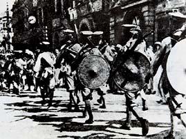 释义 | 汉口九江工人收回英租界事件 1927年1月1—3日,武汉民众集会庆祝国民政府北迁和北伐战争胜利。 3日下午英国水兵用刺刀驱赶在英租界附近集会的群众,当场刺死一人,伤三十余人,激起了中国人民的极大愤怒。4日,武汉各界代表集会,提出收回英租界等八项要求。 当晚武汉国民政府派军队和工人纠察队进驻汉口英租界。 1月6日英国水兵又在九江逞凶,打死工人一人,伤数人。 九江工人冲进并占领了英租界。2月19日、20日英帝国主义被迫与武汉国民政府签订协定,将汉口、九江的英租界归还中国。 国民革命军进驻英租界 |