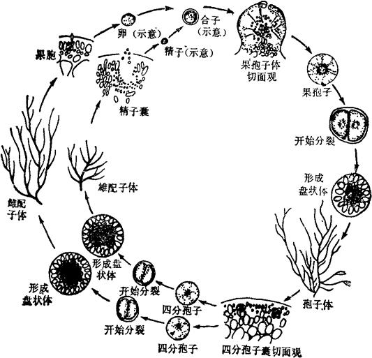 释义 | 江蓠人工养殖 (一)江蓠的生物学 1。江蓠的分类地位及我国的主要养殖种类江蓠在自然分类系统上属:红藻门(Rhodophyta)、真红藻纲(Florideophyceae)、杉藻目(Gigartinales)、江蓠科(Gracilariaceae)、江蓠属(Gracilaria)。 我国江蓠主要养殖种类的检索表 2.江蓠的生殖及生活史 江蓠的生活史通常分为三个不同的世代,即孢子体、配子体和果孢子体。三个世代是互相交替的。孢子体成熟后产生四分孢子,四分孢子萌发出来的藻体,一部分为雄配子体,一部分为雌配子体。雄配子体成熟后产生精子囊,放散精子;雌配子体成熟后产生果胞,果胞受精后经过一系列的变化,形成囊果突出藻体表面即果孢子体。果孢子体内含有许多果孢子,放散后萌发成孢子体。这样一代一代地交替下去,在同一海区、同一时期,孢子体、配子体都可以找到。江蓠染色体的数目在孢子体为双倍,配子体为单倍,而果孢子体又是双倍体。 江蓠的生殖季节在华南及福建沿海一般为春季3-5月;在我国北方沿海多为6-10月。江蓠一般为1年生海藻,孢子放散后,便附着萌发成新的藻体,而老的藻体便腐烂流失了。也有的种类为营养体繁殖,系多年生藻类。 3.江蓠孢子的萌发 一般每棵江蓠藻体大约可产生50000个孢子。孢子呈圆形,直径约30μm。不久便附着萌发,进行分裂,一星期后出现盘状体,两星期后成为直立体。以后继续萌发,一个月后便形成细小的江蓠幼苗。 图8-1 江蓠的生活史 江蓠孢子萌发最适条件如表8-1: 表8-1 江蓠孢子萌发的最适条件 4.江蓠的生态习性,见表8-2。 表8-2 几种江蓠的生态习性 (二)江蓠的养殖 1.种苗培养 (1)水塘型养殖的细基江蓠繁枝变种主要依靠营养体繁殖,初养殖时需要从别处移植。每亩水塘投放种苗约300kg,收获时适当保留种苗,即能自然繁殖生长,不需要再专门培养种苗。 (2)在盐场贮水池中养殖的脆江蓠春夏秋季都能放散孢子生长幼苗,在珊瑚礁上养殖的凤尾菜以营养体进行繁殖,因此这两种江蓠都可以在收获时适当保留一些藻体,就可以自然繁殖生长,不需要另外培育幼苗。 (3)细基江蓠、真江蓠、绳江蓠、芋根江蓠、龙须菜等依靠放散孢子进行繁殖。需要在成熟季节将藻体阴干刺激后,放入水池中,使孢子大量放散,再把孢子水撒在浅滩上进行自然海区培育幼苗。每亩苗圃约需种藻10kg,所培幼苗可供在10亩浅滩上养殖使用。 2.分散幼苗 自然海区培养的幼苗生长到10cm左右,即把幼苗拔下,均匀地夹在维尼纶或聚乙烯制造的苗绳上,进行浮筏式养殖。苗绳规格维尼纶绳为60股(20×3),聚乙烯绳为45股(15×3)。苗距5-10cm,每簇苗3-5棵,夹在藻体中央。 3.江蓠养殖管理 (1)水塘型江蓠养殖: 水塘规格:大小1ha左右,水深30-50cm。海水比重1.005-1.015,pH8.0左右,不能低于7.0。要修建闸门及进排水沟,以便于换水。底质以沙泥底为好。总氮量在100mg/m3以上。 日常管理:每亩投放幼苗不少于300kg。养殖中要经常巡视江蓠生长情况并记录水温、比重的变化,并及时清除浒苔、水云等杂藻。每月换水2-4次。必要时在换水后施肥,投放硫酸铵或尿素每立方水1g。江蓠长满水塘后,及时收获,并适当保留种苗。 (2)浅滩型养殖江蓠: 浮筏的结构及设施:浮筏长10m、宽1m。用4条小竹(Φ5cm左右)、10条苗绳及两条浮绠(120股聚乙烯绳长15m)组成。浮筏两端绑小竹,浮绠绑在两旁,苗绳平排,相距10cm。浮绠两端绑在预先固定在浅滩上的小木桩上。筏距不小于1m。 日常管理:主要进行补苗、调整浮绠长度、加大浮力、施肥(喷撒1‰的硫酸铵),防除附泥及生物敌等。 (三)江蓠的收获及加工 水塘型养殖细基江蓠繁枝变种,一般每月收获一次,适当保留种苗让其继续生长。每年约收获8-10次。鲜干比例约为8∶1,每亩水塘年产干品200-500kg。浮筏式夹苗养殖细基江蓠、真江蓠、龙须菜等优质种类时,养殖两个月后,即可一次全部收获。鲜干比例约为10∶1,每亩浅滩可收获干品100-200kg。收获季节在华南及福建沿海为3-5月,在北方为5-7月。 加工主要为制造琼胶,其程序为: (编者:刘思俭 审者:缪国荣) |