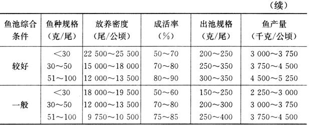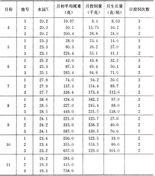 释义 | 池塘饲养长吻鮠 (一)池塘主养长吻鮠 1.池塘条件 首先应当有充沛的水源,其水质符合渔业用水标准,最好选择靠近水库、湖泊、河道、沟渠的鱼池,或者配备了增氧机、抽水机等渔业机械的鱼池饲养长吻鮠。要求每个池塘都有可控的进、排水闸阀。鱼池面积不宜太大,一般以0.75公顷以下,尤其是600~2000米2为宜,鱼池水深以1.5~2.5米较为理想。池底淤泥不能太厚,有10厘米左右即可。 在鱼种放养前10天,用生石灰严格消毒,方法同常规方法。3天后注水1米深,5~7天后便可试水放养鱼种。 2.鱼种放养 放养密度与鱼池条件、鱼种规格、饲养管理水平及地区的消费习惯等因素有关。表2-7列出了推广面上几十个点的鱼种放养及成鱼收获的统计资料,可供饲养者参考。 表2-7 长吻鮠鱼种放养与成鱼收获 生产实践表明:在长江流域,当放养鱼种的规格为30克/尾以下、每平方米水面放养2~3尾时,按常规方法饲养管理,当年只能达到尾重200~300克的出池规格;当放养鱼种的规格为尾重30~50克、每平方米水面放养1.5~2尾时,当年的尾重可达到250~450克;当放养鱼种的规格为尾重50~100克、每平方米水面放养1.2~1.3尾时,则当年就能达到尾重400~650克的商品规格。当然,在某些特殊情况下,如水源充沛、饲料质量高、管理又精细,那么即使放养鱼种的规格稍小些,同样可以获得较快的长势和较大的个体规格,但小规格鱼种的价格便宜,所以生产成本可以降低。又如一般宾馆、饭店最欢迎尾重400~600克的个体(做出的菜形体完整,好看,顾客也吃得完),而市民群众则爱买尾重1500~2500克的大鱼(肉多、实惠),那么可考虑拿一部分鱼池放养规格较小的鱼种,同时密度可稍偏大些,其产品专供宾馆饭店;而拿另一些鱼池放养大规格鱼种,且适当稀养,其产品供应大众市场。 所放养的鱼种,必须是膘肥体壮、无病无伤、色泽鲜亮、活动正常,畸形率在5%以下的鱼种,并在严格消毒后下池。 需要特别指出的是,在主养长吻鮠的成鱼池里,一般不能混放鲤、鲫、草鱼、罗非鱼等吞食性鱼类,但应该混放适量的鲢、鳙等滤食性鱼类,通常每平方米水面可混放尾重50~250克的鲢、鳙鱼种0.1~0.2尾,这样能充分利用水体中丰富的浮游生物资源和一部分饲料碎屑,既增加了鱼产品、又对改良水质有积极作用。不能混养吞食性鱼类的主要原因是它们的抢食能力比长吻鮠强得多,而长吻鮠饲料的价格又高,混养之后这几种鱼长得好而长吻鮠长不好,必危害导致养殖失败。 3.饲料及其投喂 目前,主养长吻鮠的饲料有纯动物性饲料和人工配合饲料两类。 (1)纯动物性饲料 包括低值活鱼虾、冰鲜低值鱼、水陆生蚯蚓、禽畜内脏等。这类饲料资源有限,来源分散,仅适合农村群众小面积养鮠之用。 (2)人工配合饲料 经短期驯食的长吻鮠鱼种,能够很好地摄食人工配合饲料。用配合饲料养出来的鮠鱼与用纯动物性饲料喂出来的鮠鱼,无论其品质还是口感均不相上下,但人工配合饲料可用机器生产,适合规模化、集约化养鮠之用。 长吻鮠成鱼阶段对饲料营养成分的适宜需要量为:蛋白质36%~42%、脂肪6%~9%、糖20%~27%、纤维素4%~8%。 可作长吻鮠配合饲料原料的有鱼粉、蚕蛹、肉骨粉、水解羽毛粉、酶化血粉、菌体蛋白粉和饲料酵母等。此外,还可加入较多的熟豆粕、棉仁粕、黄玉米和小麦粉等。原料按一定的配方比例称取后经两道粉碎工序再加工成直径为3~5毫米的沉性颗粒饲料,既可现做现喂,也可干贮备用。下面介绍两个饲料配方供养鮠者参考(表2-8、表2-9)。 表2-8 长吻鮠成鱼饲料配方一*(%) * 该配方饲料的粗蛋白质含量为39%~42%。 表2-9 长吻鮠成鱼饲料配方二*(%) * 该配方饲料的粗蛋白质含量为36%~40%。 此外,用成鳗饲料或成鳖饲料喂养长吻鮠的生长效果也不错,只是饲料成本较高而已。 (3)投饲 所谓科学投饲,就是要根据饲养对象不同生长阶段和环境因子的变化,准确把握投饲量,做到既能均衡地满足饲养对象对营养物质的需求,又恰到好处地发挥饲料的最大利用效率。此外,还要掌握正确的投饲方法,做到既不浪费饲料,又能让几乎所有的鱼吃均吃好。 全年的投饲量,可根据鱼种的放养量、鱼体的增重倍数和饲料系数来估算。如某养殖场计划饲养长吻鮠成鱼0.667公顷,每667米2放养平均尾重50克的鱼种1000尾,预计年底收获时成鱼的平均尾重可达450克,成活率按90%计,饲料系数为2,全年总投饲量=鱼种重量×成活率×生长倍数×饲料系数这一公式,本例的总投饲量=1000×50×10×90%×(450÷50)×2=8100(千克)。 各月的饲料分配可依据各月的水温、存塘鱼重量、日投饲率或历年的饲养经验来确定。长江流域长吻鮠饲料的月分配比例及日投饲率可参考表2-10、表2-11。 表2-10 池养长吻鮠成鱼饲料的月分配比例 表2-11 长吻鮠日投饲率参考(%) 例如:某池塘面积1000米2,计划在3月底放养平均尾重50克的长吻鮠鱼种1300尾,成活率按90%计,预计到11月可产成鱼500~550千克,饲料系数为2。又知当地历年的池塘水温大致是:4月20℃、5月23℃、6月25℃、7月27℃、8月28℃、9月25℃、10月22℃、11月17℃和当地池养长吻鮠的一般生长规律,即各月的平均尾重大致是:4月60克、5月85克、6月130克、7月220克、8月310克、9月375克、10月420克、11月450克。根据投饲率表计算各月的饲料用量。 月投饲量=鱼体平均尾重×存塘鱼尾数×日投饲率×该月天数;再根据各月的水温和鱼体均重,可从表2-11查得4~11月的日投饲率依次