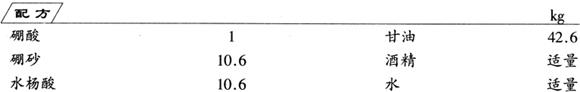 先将硼酸和硼砂用适量水加热溶解,然后依次加入水杨酸、甘油、酒精,混合均匀,即为成品。对脚汗多的人,用本药剂涂擦不仅可止痒,可消除汗脚臭。