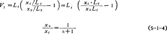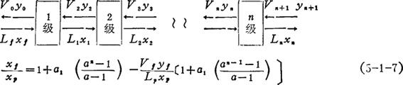 上式表明了原料中杂质含量与产品中杂质含量比值和溢流液与底流液之比、级数、溶剂中杂质的含量之间的关系。若溶剂中不含杂质时,yf=yn+1=0则