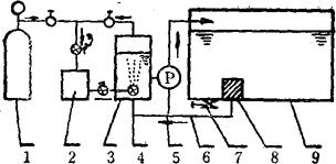 释义 | 活鱼运输方法和设备 (1)活鱼运输方法 ①湿运法。鱼不放在水里,鱼体仅仅保持一定湿度,用碎冰、干冰、低温加麻醉剂(氨基甲酸乙酯,水化三氯乙醛,叔戊基醇,喹哪啶,硫酸喹哪啶),安全时间4小时,但近年有人发现有些麻醉剂有致癌的危险,如氨基甲酸乙酯(尿烷)而不采用了。 广东以杂糠、木屑湿运龙虾,降温到10℃,12小时,成活率95%,30小时成活率60%。 ②封运法。用塑料袋或塑料箱,鱼水混装,将水面上的空气换为纯氧,水∶鱼∶气=1∶1∶4,加以密封。塑料袋最好用二层,装在厚纸板箱内,箱内塞填泡沫塑料,可减少运输重量和减少因鱼碰撞容器壁而引起的伤害。这种方法大量应用于空运。 ③船运法。这是一种传统的运鱼方法,运输量比较大,成本低,但必须与陆运结合,活鱼才能最终进入市场。为了淡水活鱼船能经过污水区、海水区,活鱼船上已广泛采用喷水增氧装置,在鱼水比为1∶3的情况下,成活率可达90%以上。 广东外贸有15艘130吨级的活鱼船,能装活鱼36吨,每吨鱼每小时喷水7.5-15吨。从广东至香港航行6小时,成活率99.4-98%。 ④箱运法。箱装活鱼形式很多,主要应用于陆运,传统的方法是木箱与帆布箱,成活率较低,现采用金属与塑料箱,箱容2-25立方米,常用的增氧装置是喷水、充气,鱼水比为1∶2。我国采用射流增氧,冬天鱼水比可达1∶1。 火车运鱼:一节车箱用帆布箱装60吨水,运5吨鱼8个人击水增氧,鱼水比要1∶10。 (2)活鱼运输车的主要设备 ①活鱼箱系统。活鱼箱有敞式及封罐式两种。封罐式一般为油槽形,利用真空与压力的交替,能自装自卸活鱼。在与鱼水分离器联用时,还能给其他车辆装卸活鱼。 活鱼箱都装有放鱼阀,放鱼阀的位置,装在车前的一侧,因为活鱼多半集中在溶氧量较高的水域,放鱼时,鱼水均匀而出,放鱼阀在后部往往先放水后放鱼,不宜分批卸鱼。 从目前来看,活鱼箱一般均采取固定式。近年来欧洲也出现了集装箱式的活鱼箱,2立方米的容积,装卸时极为方便。活鱼箱的材料采用金属。近年来,已采用玻璃钢等塑料,以便减轻重量。 ②增氧系统。在常温下,一公斤活鱼要消耗水中30公升的溶氧。夏天,一只1.6立方米的帆布鱼箱,如没有增氧设施,盛放300公斤鱼,用卡车运输1-2小时,成活率只有30%左右。 1公斤草鱼在水温22℃时,每小时耗氧238毫克,那时水中饱和溶氧量只有6.5毫克/升,即每小时要消耗水中36公升溶氧,这还不包括鱼体污染水体的耗氧量。即使这样,一辆四吨卡车的活鱼箱,鱼水比在1∶36时,一小时也只能安全养鱼10多公斤。如果长途运输一天,就只能装4公斤多的鱼。因此,高密度运输活鱼,必须装有增氧设备。 活鱼车的增氧形式目前主要有四种类型: 喷水式 一种传统的增氧形式,动力效率180克·氧/千瓦·时左右。因结构简单,采用较多,由高压泵、自吸泵抽出鱼箱底层水,通向活鱼箱顶上的开孔喷水管向水面喷淋增氧,装鱼后水中溶氧能保持在2-3毫升/升。因喷孔小,容易堵塞,因而可靠性差(图5-13)。 图5-13 活鱼车喷水增氧系统 1.水泵;2.水管;3.放鱼阀;4.进水罩;5.喷水管;6.贮鱼箱 充气式 由压气机供给压缩空气,通向活鱼箱底的微孔塑料管或钻孔铜管,使空气中的氧溶入水中,使溶氧能保持在在3毫克/升左右。动力效率230克·氧/千瓦·时。采用活塞式压缩空气机时,要串联一个油气分离装置。中东的以色列等国的活鱼车还采用充气式,近年来日本活鱼车改用了防止油污空气的隔膜式压气机(图5-14)。 图5-14 活鱼车充气增氧系统 1.压气机;2.油气分离器;3.充气管;4.放鱼阀;5.微孔管;6.贮鱼箱 纯氧式 由氧气瓶通过减压阀供给纯氧,通向密封的气水混合箱箱底散气管,用水泵抽出混合箱下层的高氧水。混合箱上层的氧气仍由压气机抽出,并重新压入密封箱散气管,以提高纯氧的利用率。但这种方式应注意预防氧中毒(纯氧在水中的饱和溶解度为空气氧的4.8倍,20℃时为30.4毫克/升,水中溶氧容易超饱和,在超过15毫克/升时,鱼的呼吸频率加快,使鱼体中氧过剩,长期高氧就会造成氧中毒,鱼会麻醉死亡)。一般一瓶氧气可用7次,每次可保运500公斤鱼,成活率很高。但这种鱼在销售过程中死亡较快(图5-15)。 图5-15 活鱼车纯氧增氧系统 1.氧气瓶;2.压气机;3.密封箱;4.微孔管;5.水泵;6.回水管;7.放鱼阀;8.进水罩;9.贮鱼箱 射流式 基于以上各种增氧形式的缺点,上海试制的活鱼车采用了射流增氧装置。以高压水流,通过射流器喷咀喷出水流,造成径向负压,抽入空气,进入混合段充分混合,再通过扩散管,喷入鱼箱上层水体,而保持下层的安静环境,水中溶氧能保持在5-6毫克/升,动力效率450克·氧/千瓦·时。因射流有强烈的搅拌曝气作用,溶氧不致超饱和,比较安全(图5-16)。 图5-16 活鱼车射流增氧系统 1.水泵;2.水管;3.放鱼阀;4.进水罩;5.射流器;6.贮鱼箱 ③降温系统 鱼是一种变温动物,温度越高代谢越快。水温升高一度,鱼的代谢速度就几乎要增加一成。所以,降温亦是活鱼高密度运输时的必要措施,可减少鱼体能量的消耗,抑制新陈代谢的速度,减少鱼体代谢产物,减少水体污染以及水中溶氧的消耗。降温设备一般采用氟利昂制冷机,通过紫铜管、不锈钢盘管进行热交换。配用降温系统之后,就能控制运输中的水温。氟利昂制冷机的制冷量,应不低于5000大卡/时。另外一个简易的制冷方法是向活鱼箱中投放冰块。 但是,降温应控制在鱼能正常生存的最低温度,一般认为,温水性鱼类不得低于4℃,因