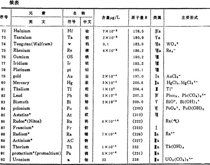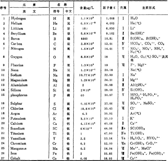 释义 | 海水组成 (一)海水中的元素 海水中几乎含有地球上已发现的所有元素,但含量多少各资料稍有不同。上海水产学院所编《海洋学》列举的含量见表2-1-1。 表2-1-1 海水中各种元素 注:标有*号的元素不稳定 (二)海水中主要成分和主要盐类 海水中已发现的元素很多,但含量大于1mg/L的元素不过15种。它们是氧、氢、氯、钠、镁、硫、钙、钾、溴、硼、硅、氟、碳、氮、锶等;其中氧、氢主要是以水的形式存在,组成海水的主体。其他各元素,以离子、分子或原子团形式,溶解于海水中;或以气相、固相(包括有机、无机的胶体状态或颗粒状态)存在于海水中。海水中主要成分见表2-1-2。 表2-1-2 海水中主要成分含量 用化合物形式表示如表2-1-3。 表2-1-3 海水中主要盐类含量 (三)海水组成的特点 海水总盐度为35‰,浓度为3.5°Bé,是一种复杂化学成分的稀薄溶液,内部时刻都在进行着物理化学变化,这是海水组成的特点之一。另一特点是成分比值的恒定性,即海水中总的含盐量,虽因客观条件的变化而有所不同,但其主要成分之间的比值却几乎保持恒定。这一特点主要是海洋的巨大水体和海水的环境混合作用造成的。海水中营养成分,如磷酸盐、碳酸盐和硝酸盐等,则因海洋中生物种类和数量的不同而异。 根据海水中所含元素比值恒定性的原理,在测定海水成分时,只测定其中一个元素,一般都以氯为标准,再按比值求出其余元素的数值。各大洋和不同海域的海水主要成分与氯的比值见2-1-4。 表2-1-4 各大洋和不同海域的常量组分浓度与氯度比值 (四)海水中常量成分的存在形式 与制盐有密切关系的离子是Na+、Cl-、Mg艹、SO4=、Ca艹和K+等,在海水中的C1-为19‰、pH值为8.1、温度为25℃、气压(101325Pa1个标准大气压)的条件下,这些离子的存在形式见表2-1-5。 表2-1-5 海水中常量成分的各种存在形式 (五)我国主要盐场海水成分和浓度(见表2-1-6) 表2-1-6 我国主要盐场海水成分和浓度 |