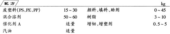 (2)将其装入已配好混合溶剂的容器中,加入催化剂A,加热到一定温度,使PS、PE、PP全部溶解,制成塑料胶浆。