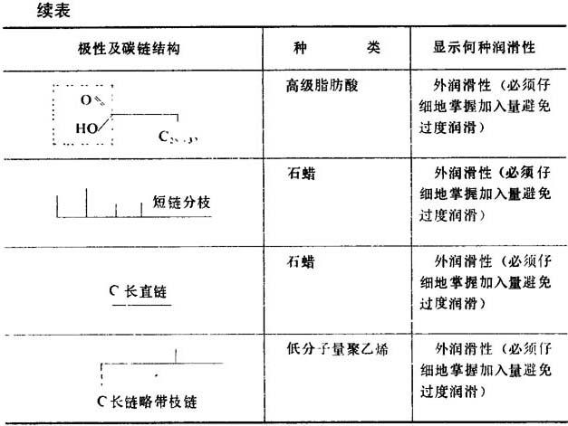 释义 | 润滑剂 为了改善聚氯乙烯熔体的流动性和防止粘附在加工设备上而添加的助剂叫做润滑剂。 (一)润滑剂的分类 对一种聚合物来说,润滑剂常可分为外润滑和内润滑两种,但就润滑剂本身来说,则无此分法。粗略地可以这样认为:外润滑是牵涉相界的过程,也就是它能降低聚合物熔体和加工设备表面之间的摩擦或对聚合物粒子本身相互间的摩擦起润滑作用。内润滑则与上述不同,它是指聚合物熔体内部的润滑,也就是说它有改进聚合物熔体流动性与均匀性的功能。区分的关键是润滑剂与聚合物之间的相容性。内润滑剂具有较大的相容性而外润滑剂则具有较小的相容性。对聚氯乙烯来说,判断的因素有两个,即润滑剂分子的碳链长短和有无极性。碳链较长和极性偏小的都倾向于外润滑作用;碳链较短和极性偏大的则属于内润滑。但这不是绝对的,例如内润滑剂用量过多时,也会因超过相容极限而出现析出现象。其次,相容性往往是随温度和压力的上升而变大或从“无”变为“有”的,此时原为外润滑剂的又能成为内润滑剂。所以两者之间,并无十分严格的界限。润滑剂的分子结构与性能关系见表2-5-1。 表2-5-1 润滑剂分子结构与性能关系 注:虚线框内为极性基团。 润滑剂按其化学组分可分如下几类。 1.金属皂类 金属皂类是一种兼有内外润滑作用的润滑剂,它们的具体性能视脂肪酸基的长短和极性部分的金属种类而定。例如,硬脂酸皂的外润滑性比月桂酸皂强,但制品的印刷性不及用月桂酸皂的。热稳定性则由金属皂的种类来决定。硬脂酸铅的外润滑性最强,所以用量不能过多,过多会使树脂难以塑化。硬脂酸镉较差,硬脂酸钙在高温时还会粘辊。二盐基性硬脂酸铅和硬脂酸钡是在加工温度下不会熔融的固体润滑剂。金属皂除本身有润滑作用外,还会在加工过程中和聚氯乙烯树脂分解的氯化氢反应而释出脂肪酸,也是一种润滑剂。 2.饱和烃类 饱和烃类是非极性物质,在正常状态下,几乎大都是外润滑剂,使用时切勿过量,否则会造成过润滑,还可能使制品不透明。饱和烃可分为液态和固态两类。低分子量的聚乙烯也可作聚氯乙烯的润滑剂。下面分别叙述。 (1)液态石蜡 俗称白油,一般是C16H34或C20H42的饱和烃混合物,沸点250~300℃。它们的粘度可分低、中、高三种类型,其中无色无臭的重型石蜡可作润滑剂用,且可作为透明润滑剂。 (2)石蜡 是从石油或油页岩中提取CnH2n+2组成的固体饱和烃,熔点为50~60℃,加入后制品容易喷霜(比其它润滑剂为甚)。 (3)低分子量聚乙烯 即合成蜡,熔点90~100℃,与聚氯乙烯相容性差,具有外润滑性好和透明性,用量不能超过0.5份,否则会导致热稳定性急剧下降。带有部分极性基团的氧化低分子聚乙烯则是硬聚氯乙烯的优良润滑剂。 3.脂肪酸及其脂类 这一类物质大多起内润滑作用,常用的有如下品种。 (1)硬脂酸 硬脂酸作为润滑剂应用之广,仅次于金属皂。通常是C14、C16和C18的混和物,熔点为60℃,俗称三压硬脂酸,其中不应含铁、镍等重金属,碘值应小,并要求颗粒细小,使之容易分散。 (2)硬脂酸单甘油酯 它是兼具表面活性作用的润滑剂,适用于防雾滴的聚氯乙烯农业薄膜。 4.高级醇 主要是C1。、C18的高级醇,其润滑性仅次于硬脂酸,相容性好,并具有分散颜料的作用,但原料来源不充足。 (二)润滑剂的选择 作为聚氯乙烯塑料的润滑剂需满足下列要求: ①能很好地分散于聚氯乙烯树脂中并与其它助剂不互相干扰 ②不妨碍塑料的塑化性能。 ③润滑效率高,而且具有持久的润滑性能。 ④不严重降低制品质量,最好能改善制品性能。 使用单一润滑剂往往不能符合上述要求,故一般是并用。不同成型加工工艺有不同的内外润滑要求,在具体配料选择时须掌握下列各点: ①凡成型加工时剪切速率越高则要求内润滑效果要好。 ②在硬聚氯乙烯配方中,润滑剂用量应比软质为多,但要注意稳定剂的固有润滑性。 ③软聚氯乙烯制品常须具有良好的表面质量,因此配方中要特别注意润滑剂的选用。 ④配方中内润滑和外润滑应力求平衡,否则会引起加工困难。 ⑤吹塑薄膜用料中的润滑剂过少时,会引起薄膜间的粘壁,过多时则分流线处易开裂。 ⑥配方中若填充剂量多时,宜多加内润滑剂。 ⑦在挤塑用料中,金属皂用量(指配方中没有填充剂)不应超过树脂的2%(包括硬脂酸加入量),硬脂酸或石蜡最多加0.3~0.5%。 ⑧硬聚氯乙烯唱片用料中常采用合成石蜡或巴西棕榈蜡为外润滑剂。 ⑨透明聚氯乙烯薄膜的润滑剂应采用硬脂酸或带有极性基团的低分子聚乙烯。 ⑩石蜡耐磨性优于硬脂酸,用于鞋底配方中既可降低成本,又可提高质量。 由上可知,塑料中的润滑剂选择不能单从润滑剂本身来考虑,必须结合加工工艺和其它配料来综合考虑。润滑剂在配方中一般用量为树脂的0.5~2%。用量过少,会发生粘附加工设备或者焦化现象,用量过多则制品表面起霜,损害制品的外观及二次加工性能,或者在加工中引起出料不正常。用量恰当,则可增加制品光泽、防止粘壁性和熔体与设备的粘附,并可降低机械耗电功率、提高产量。 (三)测定润滑性能的常规方法 1.开放式两辊混炼试验法 最简单的方法是在直径15~20cm的两辊试验机上用预定配料进行混炼。在混炼中观察它与辊筒的粘附程度、胶凝时间、透明度、热稳定性和混炼薄片表面的平滑性等。这种试验方法凭直观判断,不容易得