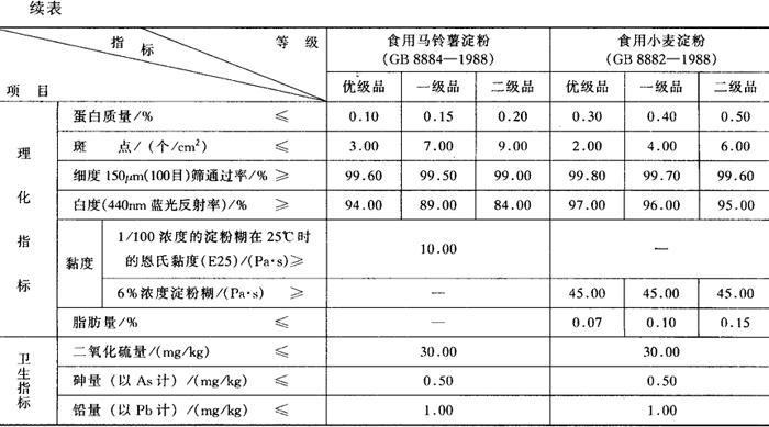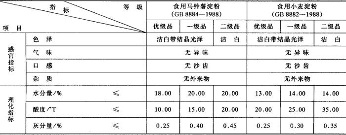 释义 | 淀粉 淀粉主要是指以谷类、薯类、豆类及各种植物为原料,不经过任何化学方法处理,也不改变淀粉内在的物理和化学特性而生产的原淀粉。原淀粉经过加工处理,使淀粉分子发生异构,改变了其原有的物理化学特性的淀粉称为变性淀粉。 (一)生产淀粉的原料 淀粉是植物贮备的营养物质,它大量贮藏于许多植物的种子、块茎及根中。从食品加工特性角度考虑,任何含有淀粉的物质均可作为淀粉加工的原料。 生产淀粉用的原料,一般分以下几类: 粮谷类有玉米、小麦、大米、高粱等,薯类有甘薯、马铃薯、木薯等,豆类有绿豆、豌豆、蚕豆、小豆等,野生植物有橡子仁、百合、藕、菱角等。 现将淀粉加工中常用原料的特性简述如下: 1.玉米 玉米是淀粉生产的主要原料之一。由于它的淀粉含量高、质量好,所以深受生产者欢迎。目前,玉米淀粉的产量约占我国淀粉总产量的90%。 玉米的形状和颜色多种多样,籽粒结构也较复杂。籽粒表面覆盖着果皮,它由坚硬而紧密的细胞(表皮)和一层很薄的不具备细胞结构的半透明膜(种皮)组成。表皮由具有厚壁和微孔的长椭圆形细胞形成。种皮保护玉米籽粒免受寄生霉菌及有害液体的侵蚀。在种皮的下部是胚和胚乳,胚乳外层细胞含有大量的糊粉粒(即蛋白质粒),这部分称为糊粉层。 玉米籽粒所含的化学成分,因品种不同而有较大的差异,在一般条件下其组成如下: 水分为12%~16%,淀粉为70%~72%,蛋白质为8%~11%,脂肪为4%~6%,灰分为1.2%~1.7%,纤维为5%~7%。 玉米籽粒的含水量是决定玉米耐贮性的主要因素。如果玉米水分含量不超过14%,则可以稳定贮藏。温度也对玉米的贮藏有重要影响。低温使玉米籽粒中形成冰结晶,这种冰结晶能引起细胞的机械性损伤;高温则导致蛋白质变性,并降低其吸收水分的能力,使玉米在浸泡过程中籽粒的膨胀度降低。 贮藏玉米的最适温度为0℃。 2.马铃薯 马铃薯是淀粉生产的原料之一,主要集中在华北及东北地区。 马铃薯的化学组成受品种、生长地区、栽培条件、收获时的成熟程度、收获后的贮藏情况以及其他因素的影响。淀粉含量占马铃薯干重的65%~80%,一般为75%。 马铃薯的一般化学成分见表1-1-22。 表1-1-22 马铃薯的一般化学成分 冬季贮藏期间,马铃薯的淀粉含量有所下降。贮藏库的温度应保持在3~4℃或更高。如在更低温度下贮藏3个月,会有1/4的淀粉转化成糖。 3.甘薯 甘薯是我国淀粉生产的原料之一。甘薯的块根中含有25%~30%的干物质及70%~75%的水分,干物质的主要成分为碳水化合物。甘薯的一般化学成分见表1-1-23。 表1-1-23 甘薯的一般化学成分 4.小麦 小麦的淀粉含量较高,一般为68%,但含有面筋蛋白质,遇水则生成面筋,与淀粉不易分离。小麦淀粉的生产一般以面粉为原料,其淀粉的产率为55%,同时还可以得到20%左右的次级淀粉和10%~15%的面筋。 (二)淀粉的性质 1.物理性质 (1)颗粒 淀粉呈白色粉末状,在显微镜下观察为形状和大小不同的颗粒。淀粉颗粒大致可分为圆形、卵圆形和多角形三种。马铃薯淀粉为卵圆形,玉米淀粉有圆形和多角形两种。 不同品种的淀粉颗粒大小不同,一般在2~150μm。马铃薯淀粉颗粒大小平均值为33μm,玉米淀粉颗粒大小平均值为15μm,甘薯淀粉颗粒大小平均值在25~50μm。 (2)水分含量 淀粉含有相当高的水分,如玉米淀粉在一般情况下含水量约为12%,薯类淀粉含水量约为25%。虽然含有这样高的水分却不显潮湿,仍呈干燥的粉末状,这是因为淀粉分子中的羟基和水分子相互作用生成氢键的缘故。不同品种淀粉的水分含量有差别,这是由于淀粉分子羟基自行结合以及和水分子结合的程度不同而引起。淀粉的水分含量受周围空气的影响而有一定程度的变化,又由于周围的温度会影响空气的湿度,因此也间接影响淀粉的水分含量。温度高,相对湿度低,淀粉中水分容易散失。 (3)糊化 淀粉不溶于冷水,混于冷水中,经搅拌成乳状悬浮液,称为淀粉乳。当停止搅拌静置后淀粉则沉淀于下部。若将淀粉乳加热到一定温度,淀粉颗粒开始膨胀,温度继续上升,淀粉颗粒继续膨胀。由于颗粒的膨胀,晶体结构消失,体积膨大,相互接触变成黏稠液体。虽停止搅拌,淀粉也不会再沉淀。这种现象称为糊化,生成的黏稠液体称为淀粉糊,发生糊化现象时的温度称为糊化温度。 淀粉颗粒在加热过程中的变化,大致可分成三个阶段。开始,淀粉颗粒仅在表面少量吸水,体积膨胀极微,性质基本不变;随着加热温度升高至淀粉糊化温度,颗粒突然膨胀,使体积成倍增长,大量吸水,淀粉乳的黏度大大提高,且有一小部分的淀粉分子溶于水;若继续加热就进入过糊化阶段,颗粒膨胀成无定形的形状,更多的淀粉溶于水,淀粉乳的黏度迅速下降。 各种淀粉的糊化温度是不同的,同一种淀粉由于颗粒大小不同,糊化的难易程度也有差别,较小的颗粒容易糊化,能在较低的温度下进行。因为各种颗粒的糊化温度不一样,通常用糊化开始的温度和糊化完成的温度来表示糊化温度。表1-1-24所列是几种普通淀粉的糊化温度。 表1-1-24 淀粉的糊化温度 2.化学性质 淀粉是高分子碳水化合物,将淀粉与无机酸一起加热,结果淀粉被分解为葡萄糖。用淀粉水解酶在一定条件下作用,也能起到同样的效果。淀粉分子组成单位为葡萄糖,其分子式为C6H12O6,它体现α和β两种还原糖异构体。 一个葡萄糖分子的第1碳位置上的-OH与另一个葡萄糖分子的第4碳位置上