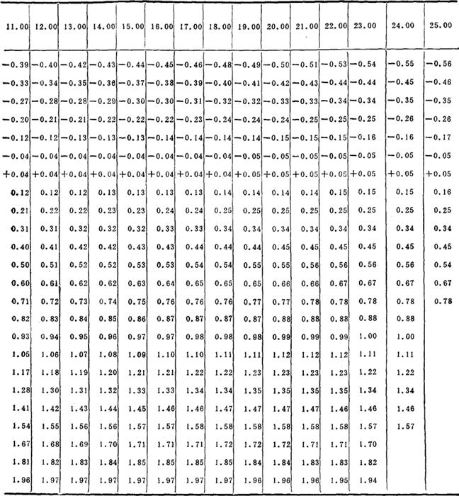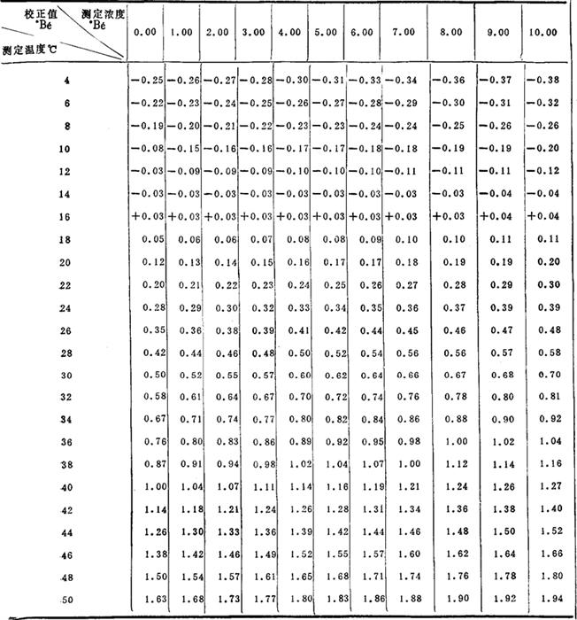 表7-1-25 温度对卤水浓度的校正表