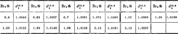 一、物理性质 溴分子由两个原子组成,分子量159.81。为深红棕色发烟液体,在室温下挥发,生成红棕色蒸气。溴蒸气为空气重量的5.515倍。微溶于水,易溶于乙醇、乙醚、苯、氯仿、二硫化碳等有机溶剂,溶液呈褐色,也易溶于盐酸,氢溴酸和溴化物溶液中。在低温时,则固化为带有金属光泽的暗红色针状晶体。溴水是溴的饱和水溶液,棕黄色,在-20℃时也不冻结,温度低于5.84℃时,游离溴不稳定,而其水合物为稳定相。在接近水的冰点时,溴则生成带有7.8或10摩尔的溴水合物。溴水的蒸气压,由于溶解盐而降低。加热时,溴蒸气即从溶液中逸出,溴蒸气压与温度的关系见图1-1-3。在日光的作用下,能形成氢溴酸。溴蒸气强烈地刺激眼睛及呼吸器官,能引起流泪、咳嗽、喉痛、头晕、头痛和鼻出血,浓度较高的还会引起窒息和支气管炎,溴素溅到皮肤上,能引起严重灼伤。其他物理数据为: 图1-1-3 溴蒸汽压与温度关系图 气体密度,对空气15℃ 5.5140g/cm3,102.6℃ 5.7280g/cm3,175.58℃ 5.6040g/cm3,227.92℃ 5.5243g/cm3 液体密度 固体密度 0~123°K 4.17~4.05g/cm3 饱和溴水溶液的相对密度 0℃ 1.028 膨胀系数 α 20~30℃ 0.0011/℃ 压缩系数 20℃,10~100MPa,6.25×10-6 溴水相对密度: 液体粘度η:-4.3℃1.31×10-3Pa·s,0℃1.241×10-3Pa·s,12.6℃1.07×10-3Pa·s,16℃1.0×10-3Pa·s,19.5℃ 0.995×10-3Pa·s,28.9℃ 0.911×10-3Pa·s 气体粘度η:12.8℃ 151×10-7Pa·s,65.7℃ 170×10-7Pa·s,99.7℃ 188×10-7Pa·s,139.7℃ 208×10-7Pa·s,179.7℃ 227×10-7Pa·s,220.3℃ 248×10-7Pa·s 表面张力(液体):25℃0.000398N/cm 蒸气压: 每个晶包中分子数,5.84℃时为4克分子 结晶水克分子数:0℃,为7、8、10克分子 晶格常数:a=0.448nm,b=0.667nm,c=0.872nm 结晶半径0.195nm,共价半径0.1142nm 气态溴在水中溶解度: 溴的饱和水溶液:101.325kPa,20~25℃,含溴3.22~3.41% 水在溴中的溶解22℃,0.046% 液态溴在水中的溶解度 注:在0℃时的数据是不同作者所得结果。 在不同盐溶液中的溶解度(25℃) 注:①20.6℃,②20.8℃ 水解平衡常数 利用下式计算 20℃ 5.2×10-9 35℃ 11.3×10-9 熔点 -7.2℃; 沸点58.78℃; 解离常数1000℃ 8×10-3 解离度 800℃ 0.16%, 850℃ 0.20%, 900℃ 1.48%, 950℃ 2.53%, 1000℃ 3.98%, 1050℃ 6.3%,1284℃ 18.3% 临界温度 315℃, 临界压力10,335,15Pa; 临界密度1.26g/cm3; 气体导热系数 273~700K 1.20~1.52×10-4 溴水相对密度 液体热导系数 283~323K 3.04~2.52×10-4; 气体热容 83~228℃ 0.2314J/(g·℃); 液体热容 25℃ 0.4729J/(g·℃); 固体热容 -23.15℃ 0.3707J/(g·℃); 熔融热 ΔH熔融-7.25℃ 66.11J/g;摩尔热 25℃气体 30.71J/(mol·℃); 气化热 ΔH气化59℃ 187.44J/g;离子化热 ΔH离子化 1046kJ/mol; 解离热 ΔH解离 238.1kJ/mol;熵 S°25℃ 245kJ/(mol·℃); 气化熵 S°气沸点时 88.89kJ/(mol·℃);液体折射率 固体折射率 气体介电常数ε标准状态下 1.0047;液体介电常数 273~303°K 3.255~3.080; 电导率λ液体 17.2℃ 1.3×10-13S/cm;气体磁化率×10-6-73.5c.g.s制电磁单位; 液体磁化率×10-5-56.4c.g.s制电磁单位;电离势10.54±0.03电子伏特 电极标准电位 二、化学性质 溴的化学性质特别活泼,位于氯、碘之间,几乎能与所有元素起反应,生成相应的化合物。除贵金属外,溴能与所有金属化合,放出大量的热。 氧化反应 溴是强氧化剂,许多反应起因于它的强氧化性。在有水分存在时,能把二氧化硫氧化成硫酸,并生成溴化氢,在碱性介质中,氨、尿素等氮化物,被氧化产生氮气。 溴与镁、银、铅和镍起反应,先生成溴化物外层,可以阻止进一步向内部反应,这种保护层,使铅成为容溴的有用器具。在溴腐蚀金属过程中,湿气起了重要作用,原因是溴水解溴化氢和溴氢酸,在水量低于40%的情况下,可用镍容器装运溴素。干燥溴与铁反应比较慢,可生成溴化铁保护层。 溴元素很容易加入不饱和化合物中,如二溴化乙烯的生产,即加溴到乙烯中,Br2+C2H4→BrCH2·CH2Br。 取代反应 溴与芳香族体系接触,则起吸电子取代反应。这种反应的进行,须有吹化剂,最普通催化剂是溴化物离子或氯化物离子或者是铝。溴对氢的均裂取代,是生产几个溴化物的一般反应。与烧基芳香族化合物产生这个反应是很容易的,从甲苯的苯基溴化生产溴化苯,可以说明这个问题。 溴与烧碱或纯碱起反应,可生溴化钠,与氨起反应可生产溴化氨,向液态溴中通氯气可生产氯化溴。 三、用途 溴是制取溴的有机、无机化合物的主要原料,广泛地用在各有关方面: (1)石油工业 溴的最大用途在石油工业中是生产二溴化乙烯,它与四乙基铅合成乙基溶液,可作飞机,汽车等内燃机抗爆剂,近年来由于铅的污染问题,虽用量减少,但还占总消耗量的一定比例。由溴生产的溴化钙,可作一种填充液,用在油井钻探和维修方面。 (2)杀虫灭菌 溴的杀虫灭菌力很强,在农业上用薰蒸剂、杀虫剂。近年来有些溴化物,用作植物生长激素,可增产10%左右,溴的比重大,毒性比氯小,适于上下水道杀菌之用。 (3)医药 用溴可生产氯霉素、金霉素,合霉素、甲种维生素种激素的中间体等。此外,还可用于镇静剂、麻醉剂、抗生素等药物合成方面。 (4)印染纺织 溴及溴化物用于制造靛系染料及酸性染料中间体,可使色泽鲜明,增进着色力和牢固性。特别是亚溴酸钠,可作还原性硫染料的氧化剂,既可避免环境污染,又可减少各种原料消耗。在纺织品上浆、退浆、印染漂白方面、大量使用。 (5)化学试剂 主要作氯化剂、溴化剂、催化剂指示剂等。 (6)阻燃剂 溴系有机阻燃剂功效高,用量少,对聚合物加工使用不良的影响也少,因此,大量