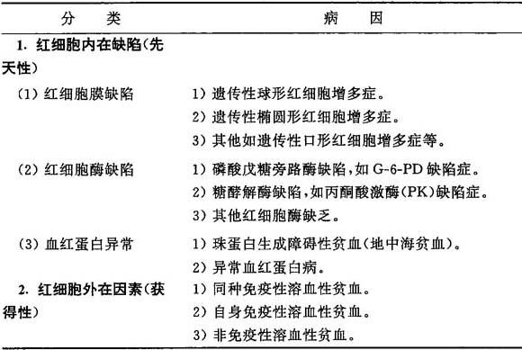 释义 | 溶血性贫血 【释义】: 由于红细胞内在或外在因素引起的破坏过多,寿命缩短所产生的贫血称为溶血性贫血。 根据溶血的病因,可分为先天性和获得性。见表17-2。 表17-2 溶血性贫血的病因分类 【诊断】: 1.临床表现 (1)症状 可见程度不等的贫血和黄疸。急性伴大量溶血时可有发热、寒颤、恶心、呕吐等症状。血管内溶血时尿色加深呈酱油色或葡萄酒色。 (2)体征 面色苍黄、全身贫血貌伴黄疸,肝脾呈不同程度肿大。 2.辅助检查 (1)实验室检查 1)红细胞破坏过多 正细胞正色素性贫血;血清胆红素增高;以间接胆红素增高为主;粪胆原及尿胆原排出量增加;游离血红蛋白增加;血清结合珠蛋白下降或消失。 2)红细胞代偿性增生 网织红细胞增高;外周血出现幼红细胞,成熟红细胞可呈多色性,红细胞内可见Cabot环、Howell-Jolly小体等;骨髓红细胞系统增生活跃,以中晚幼红细胞为主。 3)溶血病因 a.抗人球蛋白试验 免疫性溶血可出现Coomb试验阳性。 b.抗人球蛋白阴性者再作以下检测: (a)涂片观察红细胞形态: 球形红细胞:遗传性球形红细胞增多症。 椭圆形红细胞:遗传性椭圆形红细胞增多症。 靶形红细胞:珠蛋白生成障碍性贫血(地中海贫血)及某些血红蛋白异常。 (b)红细胞形态正常者,可作G-6-PD活性测定或作高铁血红蛋白还原试验。 (c)红细胞脆性试验 对诊断球形红细胞增多症有决定作用。 (d)血红蛋白电泳 有助于确诊珠蛋白生成障碍性贫血(地中海贫血)及其他血红蛋白异常。 (e)异丙醇试验 用以检测不稳定血红蛋白和血红蛋白H(HbH)。 【治疗】: 治疗原则 除去病因,减少红细胞破坏,纠正贫血。 (1)除去病因 对G-6-PD缺乏者应避免食用蚕豆及氧化性药物。 (2)激素治疗 主要适用于自身免疫性溶血性贫血。 (3)输血治疗 急性溶血后发生重度贫血应及时输血,以防止并发症。对免疫性溶血性贫血可输注洗涤过的红细胞。 (4)脾切除术 对遗传性球形红细胞增多症、珠蛋白生成障碍性贫血(地中海贫血)及自身免疫性溶血性贫血等有切脾指针,患者年龄应大于4岁为宜。 |
