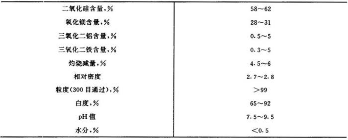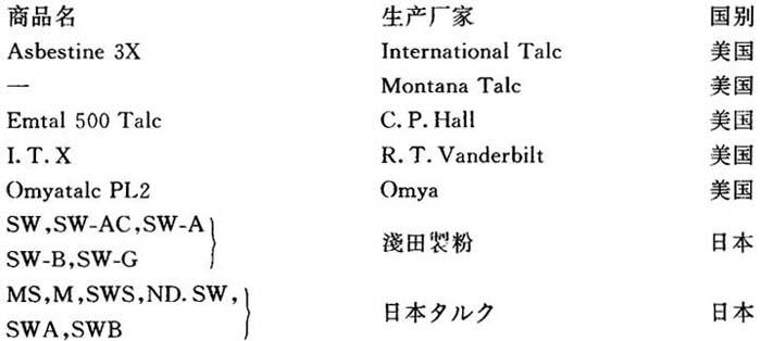 释义 | 滑石粉 【释文】: 化学组成 主要成分为水合硅酸镁。分子式可写成:3MgO·4SiO2·H2O或H2Mg3(SiO3)4 制法 由天然滑石粉碎精选而得。 性质 优质纯品为白色鳞片状结晶,并含有纤维状物,含有杂质者呈淡黄、淡绿、淡蓝等色。滑石粉晶体属单斜晶系,呈六方形或菱形。化学性质不活泼,粉体极软,有滑腻感。表13-5为滑石粉的一般性质。 表13-5 滑石粉的性质 用途 本品作为塑料用填充剂可提高制品的刚性,改善尺寸稳定性,防止高温蠕变。其具有润滑性,可减少对成型机械和模具的磨损,但用量多时不利于塑料的焊接。本品适用于聚氯乙烯、聚丙烯、尼龙、ABS树脂等塑料,多用于耐酸、耐碱、耐热及电绝缘制品中。因本品的折光率(1.57)与聚氯乙烯相近,故可用于半透明制品。含纤维状成分多的滑石在聚氯乙烯中有一定的增强效果,类似于石棉,可代替石棉用于地板料中。用硅烷偶联剂处理的具有片状结构的超细滑石粉可以改善尼龙和ABS树脂的挠曲模量。 本品在橡胶工业中主要用作隔离剂和表面处理剂。作为填充剂多用于耐酸、耐碱、耐热及绝缘制品中。对硫化无影响。细滑石粉对三元乙丙橡胶有补强作用,能提高拉伸强度、定伸强度和硬度。 毒性 本品无毒,可用于接触食品的制品。 国内生产厂 大同市造型材料厂 浑江市滑石矿 海城滑石矿 国外生产厂 |