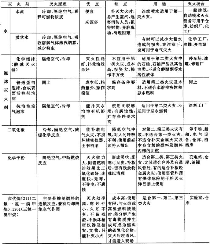 释义 | 灭火设备 灭火设备可以是手动或自动的。手动灭火设备主要是指手提式灭火器。固定灭火系统是指室内喷水灭火系统。其他灭火剂的灭火设备,可以手动也可以自动操作。 在选择灭火器时,应了解灭火剂的性能、使用对象及优缺点。灭火的方法有四种: 1.将燃料搬走,切断燃料来源; 2.除去或隔绝氧化剂,即能对火产生窒息作用; 3.通过冷却使燃料温度降低到燃点以下; 4.通过使用能反复中断化学反应的药剂并使温度下降到燃点以下。 使用任何一种方法都可以灭火。所有灭火剂在灭火时都可以起到一种或几种作用。必须了解灭火剂对不同燃料是如何起到灭火作用,以便选用正确的灭火剂。 为了鉴别不同类型的火灾、为了在灭火时正确地选择灭火剂,我国根据燃料性质将火灾分为四类(GB4968-85)。 (1)普通燃料,如木、纸等引起的火灾; (2)液体及气体燃料引起的火灾; (3)电路中发生的火灾; (4)可燃金属引起的火灾。 欧州国家分成五类,即将第二类的液体和气体分成两类。 现将各种灭火剂的性能、灭火原理、优缺点及用途列表加以说明。见表5.2.8-1。 表5.2.8-1 各种灭火剂的性能 无论使用何种灭火器,消防人员和义务消防人员以及生产人员都应事先经过训练,掌握各种灭火器的使用方法,不能用错。 《日本经济新闻》1986年8月9日报道,日本科防工业公司推出一种简便型自动灭火器,很受广大用户欢迎,已获日本运输省、消防厅批准。该灭火器外壳是用特种强化玻璃制成,内装氯化铵、硅酸钠等13种物质的混合液。一旦发生火灾,温度升高,玻璃容器中的混合液因受热而产生气体。当气体压力达到7个大气压以上时,玻璃容器自动破裂、气体和药液便一起喷向火苗。由于药液具有阻断氧和迅速降低温度的作用,该灭火器又称瞬时灭火器或贮压式灭火器。据报道一个10m2的房间只需1个内含600ml药液的灭火器,在无人时也能扑灭火苗。 国外还报道了许多新型灭火剂的专利,如日本专利报道了用1%羧甲基羟乙基纤维素作增稠剂,加到12%磷酸氢二铵水溶液中制成飞机喷洒型灭火剂用于森林灭火。该灭火剂稳定性好。 蛋白泡沫液加上适量的氟碳表面活性剂可提高灭火能力,在这方面日本专利及波兰专利均有报道。 德国专利报道了一种含有0.4%丙烯酸聚合物的膨润性高分子水溶液作灭火剂,灭火用水量和灭火时间均可减少30~35%,从火场流出的水量也能减少85%。 前苏联专利报道了几种新型灭火粉,有的是含有95~99.7%氟硅酸钾和0.3~5%流动添加剂。具有较好的灭火能力,不易吸潮结块,生产费用较低。还有一种是将碱金属的碳酸盐和极细的含磷石膏粉共混、进行热处理和冷却,再和白碳黑一起研细,其成品质量优良,成本也较低。 |