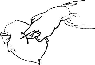 点法是以指峰或屈指后,以第1指间关节突起部着力于一定穴位或部位,用力下压的一种手法(图3-11)。