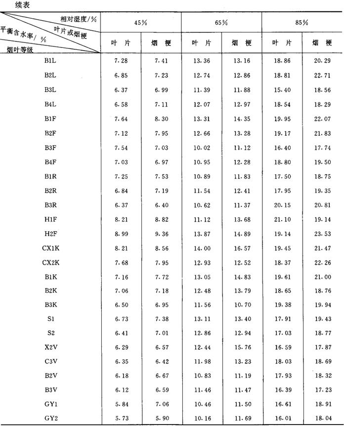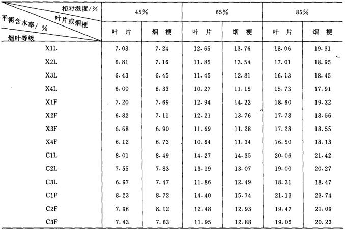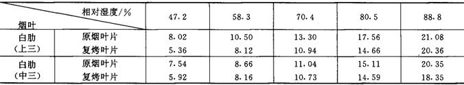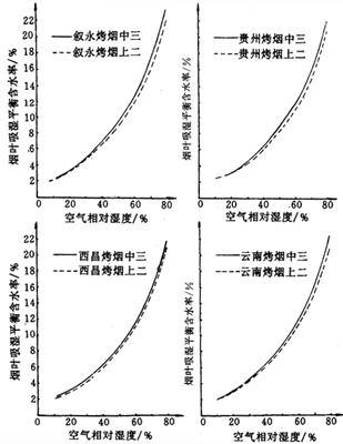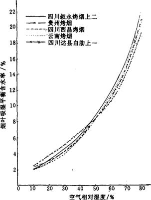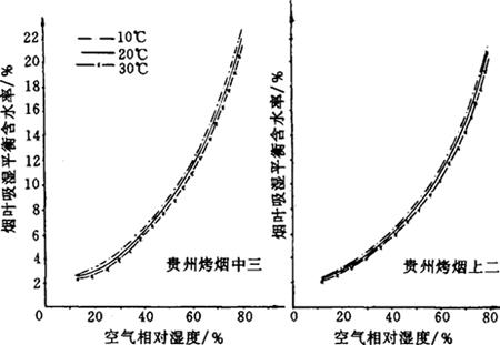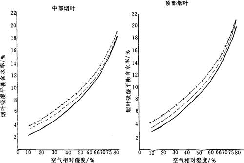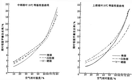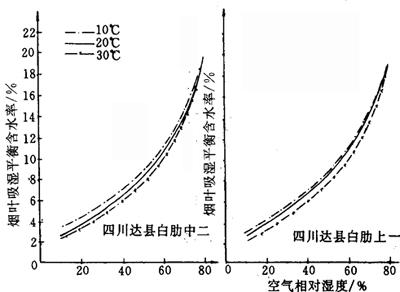 释义 | 烟叶的吸湿性 (一)烟叶吸湿性概述 烟叶吸湿性包括吸湿和解湿现象。在同一温湿度条件下,烟叶的吸湿与解湿过程所达到的平衡含水率有一定差异,见图4-6-3。在吸湿和解湿过程中,烟叶含水率达到动态平衡时,此时烟叶的含水率均为平衡含水率。 图4-6-3 烟叶的吸湿和解湿过程曲线 (二)影响烟叶吸湿性的主要因素 1.空气相对湿度 在同一温度条件下,空气相对湿度影响烟叶的平衡含水率高低(图4-6-4和图4-6-5)和吸湿速度快慢(图4-6-6和表4-6-5)。 图4-6-4 上部烟叶吸湿曲线(20℃) 图4-6-5 中部烟叶吸湿曲线(20℃) 图4-6-6 烤烟、白肋烟吸湿速度曲线(20℃) 表4-6-5 烟叶单位时间吸湿量 单位:mg/(g·d) 2.空气温度 在同一相对湿度条件下,空气温度高时烟叶的平衡含水率低;温度低时平衡含水率高, 见图4-6-7、图4-6-8和图4-6-9。空气温度对烟叶吸湿速度的影响见表4-6-6所示。 图4-6-7 晒烟于10C、20℃、28℃等温吸湿曲线 图4-6-8 烤烟于10℃、20℃、28℃等温吸湿曲线 图4-6-9 白肋烟于10℃、20℃、28℃等温吸湿曲线 表4-6-6 空气温度对烟叶吸湿速度的影响 注:空气相对湿度100%。 3.空气流速 烟叶的平衡含水率不受空气流速的影响,但其吸湿速度受空气流速影响。在空气温湿度不变的情况下,空气流速加快,烟叶的吸湿或解吸速度也加快,当空气流速增加到一定程度后,烟叶的吸湿或解吸速度增加得相当缓慢,见表4-6-7所示。 表4-6-7 空气流速对烟叶吸湿速度的影响(相对湿度95%,温度25℃) 4.烟叶的类型和部位 不同类型和部位的烟叶在20℃条件下的平衡含水率见图4-6-10、图4-6-11和图4-6-12。 图4-6-10 烤烟、白肋烟、晒烟等温吸湿曲线(20℃) 图4-6-11 中、上部烤烟烟叶等温吸湿曲线(20℃) 图4-6-12 中、上部白肋烟叶等温吸湿曲线(20℃) 5.烟叶等级 同一类型烟叶中,等级高的吸湿性强,等级低的吸湿性弱,见表4-6-8所示。 表4-6-8 烤烟40级制烟叶平均含水率 6.叶丝和烟梗 图4-6-13是叶丝和梗丝平衡含水率随空气相对湿度变化的等温吸湿曲线。在较低的相对湿度下,叶丝平衡含水率高与梗丝。当空气相对湿度超过某一定值后,梗丝平衡含水率大于叶丝。 图4-6-13 叶丝和梗丝等温吸湿曲线(10℃) 7.原烟和复烤烟 复烤烟的吸湿性能低于原烟的吸湿性能,见表4-6-9。 表4-6-9 原烟和复烤烟叶在20℃条件下的平衡含水率(%)比较 |