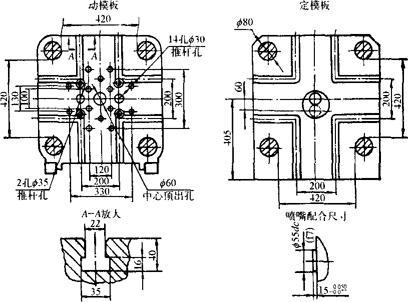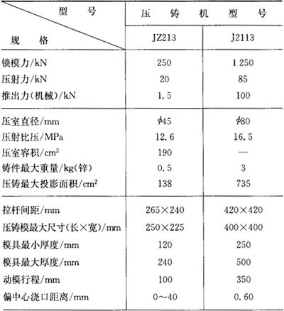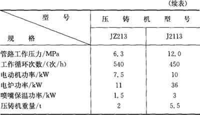 释义 | 热压室压铸机 1.热压室压铸机的型号及主要参数(表3.4-1) 表3.4-1 热压室压铸机型号及主要参数 2.热压室压铸机模具安装尺寸(图3.4-1、图3.4-2) 图3.4-1 JZ213型压铸机模具安装尺寸 图3.4-2 J2113型压铸机模具安装尺寸 |