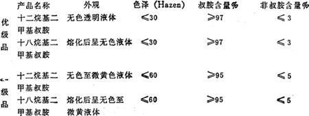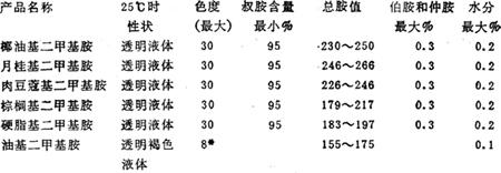 释义 | 烷基二甲基叔胺 结构式 性能 溶于醇、醚、酮等低碳有机溶剂。 质量规格(轻工业部日化所;日本花王公司) 轻工业部日化所 日本花王公司 注*加纳尔色泽 用途 是制备各种氧化胺、甜菜碱、季铵盐的主要中间体。 国内生产厂 轻工业部日化所、山西长治市轻工业研究所、上海洗涤剂三厂、北京日化六厂、上海助剂厂等。 国外生产公司 日本花王公司,德国HOeehse、Hiils公司。 |