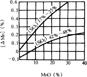 图4-12 焊剂中MnO含量与锰过渡量[AMn]的关系 |