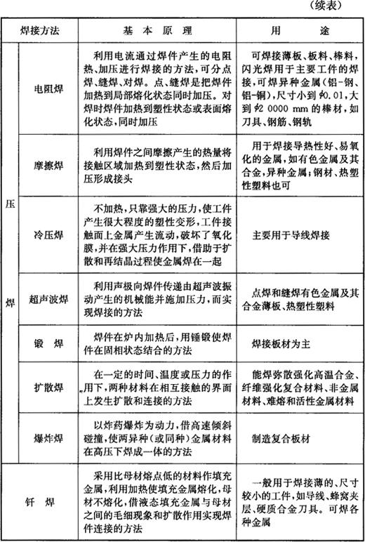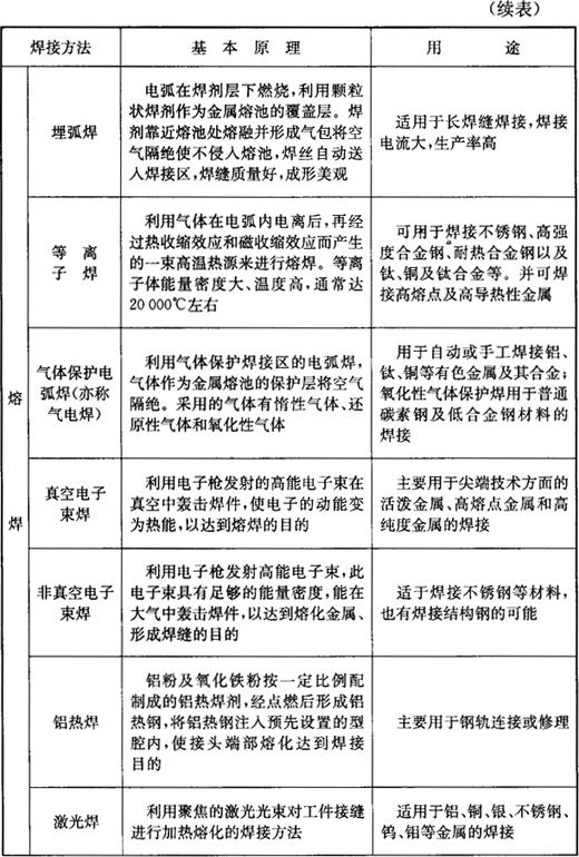 2.各种焊接方法基本原理及用途(见表7-4) 表7-4 各种焊接方法基本原理及用途