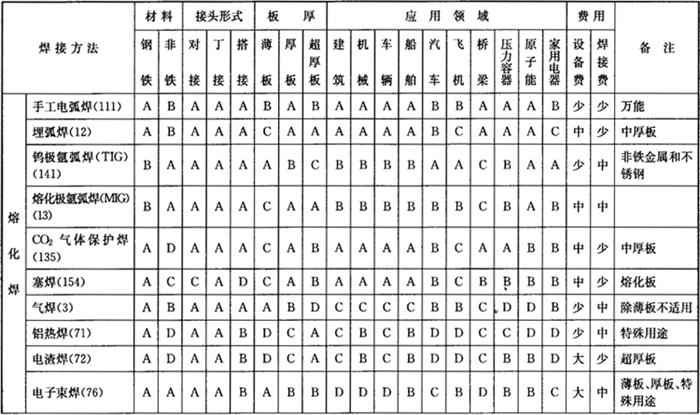3.焊接技术应用领域及范围(见表7-5) 表7-5 焊接技术应用领域及常用焊接方法应用范围