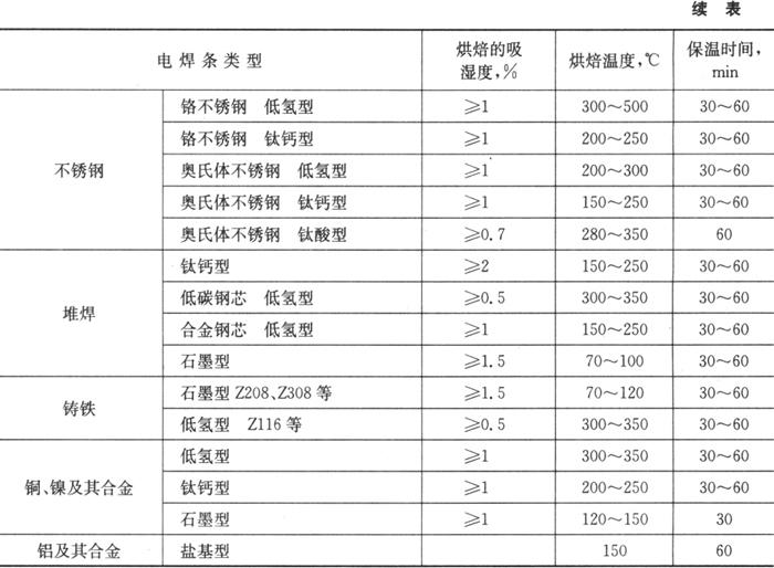 释义 | 焊接材料的储存、保管及管理 1.焊接材料的储存 进厂的焊接材料必须按国家标准或设计规定标准的要求进行复验,只有检验合格的焊接材料才能办理入库手续。 焊接材料的存放条件应能使焊接材料保持其原有的性能。为此,焊接材料必须存放在干燥通风良好的室内仓库中,仓库内不允许放置有害气体和腐蚀性介质。室内应保持整洁并保持一定的温度和湿度(室温宜10~25℃,相对湿度小于50%)。材料制造商负责确定所需的最低温度和最高相对湿度。 焊接材料应存放在架子上,架子离地面距离不小于300mm,离墙壁距离不小于300mm,并与顶保持一定距离,以达到上下、左右空气畅通,架子应放置干燥剂,严防焊接材料受潮。搬运过程要轻放,防止包装物损坏。 每包经过验收试验的焊接材料在入库时必须作适当的标志。包装要表明其中是一包(或是几包焊条包在一起的大包)、一卷、一盘或一捆焊丝。 焊接材料堆放时应按种类、牌号、批次、规格、入库时间分类堆放。每垛应明确标注,避免混乱。应遵循先入库的焊接材料先使用的原则。 特种焊接材料的存放与保管要求应严于一般焊接材料。特种焊接材料应堆放在专用仓库或指定区域,受潮或包装损坏的焊接材料未经处理不许入库。 对于受潮、药皮变色、焊芯有锈迹的焊条须经烘干后进行质量评定。若各项性能指标满足要求时方可入库,否则不准入库。 对入库后进行验收试验的材料,试验后必须作上标志。 如果使用同一地点存放验收合格的材料和待作验收试验的材料或其他材料时,在这些材料之间必须进行实体分隔。存放点要有足够的地方以便将这些焊接材料分隔开。 在存放期间,材料必须完好地保持在它的原包装中。任何变质或性能降低的材料应报废。 2.存放管理 对验收过的焊接材料的存放管理必须提供每“批”或每炉材料的下述内容: 名称、尺寸、经过验收试验的材料入库数量、验收试验日期、有效期、材料配组的批号(例如焊丝一焊剂组)、出库日期、出库数量、出库文件编号或材料报废标记。 3.出库 焊接材料出库时,必须交给仓库管理人员或者其他代理人一份至少包括下列内容的清单: 名称、尺寸、数量、批号、对某给定设备或焊缝所指定的焊接材料。 4.烘干和使用 (1)焊条的烘干和使用 应提醒使用者注意,必须根据使用条件、储存方法和使用种类规定出库的材料的最大数量,以使材料性能不受损坏。 供货商应提供烘干和保管的要求(温度和保温时间)。 使用者应把焊条和焊剂放在烘箱内进行烘干。焊条从包装中取出后应放在烘箱中烘干。 每个烘箱上应附加一个牌子,标明装入烘箱内焊接材料的牌号、批号和烘干条件。 每个烘箱每次只能装入一种牌号的焊接材料。但在下列条件下,可在同一烘箱中装入几种不同牌号的焊接材料: ·烘干条件完全相同; ·不同牌号焊材之间实行实体分隔(这种情况下分开某一空间不能视为实体分隔)。 烘干后,焊条和焊剂在使用前一直存放在加热容器或加热柜中。在使用期间,如焊条或焊剂在常温下已搁置4h以上,即必须重新进行烘干。重新烘干的次数根据不同的牌号加以的规定。 每个焊工应备有一个手提式焊条保温筒。 对于已经拆包取出但尚未使用的焊条和焊剂,只有按照上述的规定、按照规定标志和重新包装的方法和程序实施后才能放回库内。 焊条领用后,再烘干时都必须仔细核对牌号,分清规格,作好记录。应仔细核对焊条端头或药皮上的标记,防止用错。不同牌号的焊条或焊剂不能在同一炉中烘干。从炉中取出的焊条应放入焊条保温筒内带到施工现场,做到随用随取。 焊接材料在烘箱中不能成捆堆放,应铺成层状,焊剂不能铺得太厚,药皮焊条不超过三层,以避免在烘干时受热不均,潮气不易排出。 焊条在烘干时,禁止将焊条突然放进高温炉内,或从高温炉中突然取出冷却,防止焊条因聚热或聚冷而产生药皮开裂脱皮现象。 对于在高湿度环境中施焊或焊接高强度钢用焊条要严格管理,再烘干后的使用时间要严格控制。高强度钢构件用焊条的推荐标准见表11-2。各类焊条烘焙规范见表11-3。 表11-2 高强度钢构件用焊条的推荐标准 表11-3 各类焊条烘焙规范 (2)焊剂的再循环使用 建议焊剂不循环使用,特别是含有金属元素铬的焊剂;但当焊剂再循环使用时,必须满足下列要求: a.再循环焊剂的使用必须与新的同批号焊剂混合,其比例不能超过最后混合物的50%; b.在混合前,应采用适当的方法,清除掉循环使用焊剂中的熔渣和粉尘; c.制造商必须表明混合焊剂的颗粒度大小并在标准规定的范围内。 5.焊接期间对焊接材料的标识 所有焊接材料在整个使用过程中都应能随时识别,为此,必须遵守下列要求: (1)药皮焊条 每根焊条应打上标记。 (2)盘装焊丝 每盘焊丝都应有一个至少能指明焊丝牌号、直径和批号的明显标签。没有标签的盘装焊丝应报废。 (3)棒状焊丝 采用下述方式在每根焊丝上标明牌号: 用字头打上特定号码; 在焊丝的一个端头上涂上特定的颜色。 在选用第二种方法时,在每个作业班的附近应放置一块与规定颜色相对应的焊丝牌号指示板,并要求焊工必须从未着色的一端开始焊接。 (4)卷装焊丝和焊带 在卷装焊丝和焊带的一端应有一个至少标明牌号和批号的标签,并且该标签在整个焊接期间始终固定在其端部。 (5)焊剂 焊剂至少应有牌号和批号的适