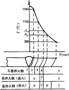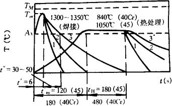 释义 | 焊接热影响区 在焊接热源的作用下,焊缝两侧发生组织性能变化的区域叫做“热影响区”,或称“近缝区”。在熔化焊条件下,焊接接头是由两个相互联系,而其组织性能又有区别的两个部分所组成,即焊缝区和热影响区。实践表明,焊接质量不仅仅决定于焊缝,同时还决定于热影响区,有时热影响区存在的问题比起焊缝还要复杂,这一点在焊接合金钢时特别明显。 1.焊接热循环 (1)焊接热循环的意义:焊接过程中热源沿焊件移动时,焊件上某点的温度随时间由低而高,达到最大值后,又由高而低的变化,称为焊接热循环。它描述了焊接过程中热源对该点母材金属的热作用。显然,在焊缝两侧距焊缝远近不同的各点,所经历的热循环是不同的,距热源越近的各点,加热达到的最高温度越高,由此可见,焊接是一个不均匀的加热和冷却过程,这种过程必然会造成热影响区组织和性能的不均匀性。焊接接头示意图和焊接热循环示意图分别见图2-7和图2-8。 图2-7 焊接接头示意图 1-焊缝 2-熔合区 3-热影响区 4-母材 图2-8 焊接热循环曲线 (2)焊接热循环的主要参数:描述焊接热循环的主要参数有加热速度、加热的最高温度、相变温度以上停留时间和冷却速度。 单层电弧焊和电渣焊低合金钢时热影响区的热循环参数见表2-6。 表2-6 单层电弧焊和电渣焊低合金钢时热影响区热循环参数 (3)影响焊接热循环的因素: 1)焊接规范和线能量:电弧焊时的焊接规范如电流、电压、焊接速度等,对焊接热循环有很大影响。其他条件不变时,电弧功率(IU)越大,加热范围越大;电弧功率不变,焊接速度快时,加热时间缩短,加热范围变窄,冷却得快;焊接速度慢时则相反。因此,采用线能量这一单位可以综合性描述焊接电流、电弧电压和焊接速度三个规范参数对热循环的影响,即 式中I——焊接电流(A); U——电弧电压(V); V——焊接速度(mm/s); q——线能量(.J/mm)。 线能量q是单位长度焊缝内输入的焊接热量,线能量增大时,热影响区宽度增大,高温区域增宽,高温停留时间加长,冷却速度减慢。 生产实践中,根据焊件结构、成分等具体条件,在保证焊缝成形良好的前提下,适当调节焊接规范,以合适的线能量焊接,可以保证焊接接头具有良好的性能。 2)预热和层间温度:焊接有淬硬倾向的钢材或厚大结构焊接时,往往需要焊前预热。预热的主要目的是为了降低焊接接头的冷却速度,从而减少淬硬倾向,防止冷裂纹,同时,预热可以减少焊接残余应力。预热对冷却速度的影响见表2-7。 表2-7 预热对焊接热循环的影响 从表中可以看出,预热能够降低冷却速度,但基本上又不影响高温停留时间,比较理想。所以焊接具有淬硬倾向的钢材,降低冷却速度、减小淬硬倾向的主要工艺措施,是进行预热,而不是增大焊接线能量。 层间温度是指多层多道的焊接过程中,后道焊缝开始焊接时,前道焊缝的最低温度。对于要求预热焊接的钢材,一般层间温度应等于或略高于预热温度。控制层间温度也是为了降低冷却速度,并可促使扩散氢逸出焊接区,有利于防止产生裂纹。 3)其他因素的影响:板厚、接头型式和材料的导热性对焊接热循环也有很大的影响。板厚增大时,冷却速度增大,高温停留时间减小。角焊缝比对接焊缝的冷却速度大,例如,当板厚为12mm时,角焊缝的冷却速度是对接焊缝的3~4倍。 2.焊接热循环条件下的金属组织转变特点 从基本原理来看,焊接条件下的组织转变与热处理条件下的组织转变是一致的,新相的形成过程和组织转变过程的动力条件都符合经典的结晶理论。但是,焊接条件下的热循环有其自身的特点和规律,在组织转变上必然与热处理工艺条件下的表现不同。因此,根据焊接热循环的特点,建立焊接条件下的金属学理论,研究焊接接头的相变机理和组织转变规律,更具有实际的指导意义。 焊接作为一门热加工工艺,其本身的特点如下: 加热的温度高:一般热处理情况下,加热温度都不超过Ac3以上100~200℃,而在焊接时,近缝区熔合线附近可接近金属的熔点,对于低碳钢和低合金钢来讲,一般都在1350℃左右。显然,二者相差甚大。 加热的速度快:焊接时由于采用的热源强烈集中,故加热的速度比热处理时要快得多,往往超过几十倍甚至几百倍。 高温停留时间短:焊接时由于热循环的特点,在Ac3以上保温的时间很短(手工电弧焊约为4~20s,埋弧焊约30~100s),而在热处理时可以根据需要任意控制保温时间。 自然条件下连续冷却:焊接过程中,一般都是在自然条件下连续冷却,个别情况下才进行焊后保温或焊后热处理。 局部加热:焊接加热一般只集中或局限于焊接区,并且随热源的相对移动,被加热区也在随之移动。因此焊接区的组织转变是在应力作用下进行的,并且这种转变的过程是不均匀的。 (1)焊接时加热过程组织转变的特点:焊接时加热的速度很快,各种金属的相变温度比起等温转变时发生很大的变化。对于低碳钢和低合金钢焊接时,不同焊接方法的加热速度如表2-8所示。 表2-8 不同焊接方法的加热速度 由金属学的原理可知,加热时由珠光体、铁素体转变为奥氏体的过程是扩散性重结晶过程,需要有孕育期。在快速加热的条件下,来不及完成扩散过程所需的孕育期,必然会引起相变温度的提高。加热速度越快,被焊金属的相变点4c1和Ac3的温度越高,而且两者之间的温度差越大。钢中含有较多的碳化物形成元素时,随加热速度的提高,相变点Ac