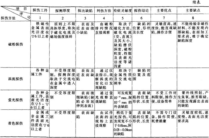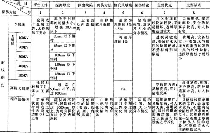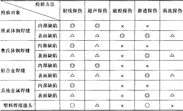 2.不同材质焊缝无损探伤方法选择(见表14-20)