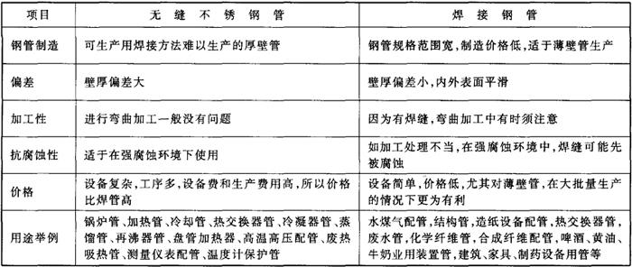 | 释义 | 焊管生产工艺 不锈钢焊管生产设备简单,容易变换产品规格和品种,比同规格的无缝管成本下降25%,两种钢管的特点比较见表3-17。不锈钢焊管适用于具有一般压力和腐蚀性介质及低温配管,一般外径为1/4~8in管焊管的成型工艺用连续式成型机,大于8in管采用压力成型或三辊弯板成型机。焊接工艺一般采用惰性气体保护电弧焊。其中壁厚≤4mm采用钨极氩气保护焊接T1G,大于4mm的采用熔化极氩气保护焊M1G或埋弧焊,焊接速度小于1m/min。为了提高焊接速度,稳定焊缝质量,新的焊接工艺有等离子电弧焊和激光焊,其焊接速度根据壁厚的不同,可以达到5m/min。 表3-17 焊接钢管与无缝不锈钢管比较
