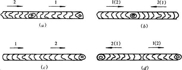 释义 | 焊缝的起焊、衔接和收尾 1.起焊 焊缝起头时,由于母材温度尚低,容易出现熔深浅、焊缝窄而高,甚至未焊透等缺陷。克服这些缺陷的工艺措施如下: (1)将电弧有意提高,对工件预热,等工件预热到一定温度后再压低电弧,进入正常焊接状态。 (2)对于重要工件、重要焊缝,在条件允许的情况下尽量采用引弧板,将不合要求的焊缝部分引到焊件之外,焊后去除。 2.衔接 每根焊条焊完换焊条时,焊缝就有一个衔接点,此接点称为焊缝接头。接头的方式有四种,如图3-2所示。接头时操作注意事项如下: 图3-2 焊缝接头方式 (a)首尾相接 (b)尾尾相接 (c)尾首相接 (d)首首相接 (1)若采用图3-2中(a)、(d)形式衔接时,可在连接处附近未焊处引弧,然后移到接头处,将电弧拉长,预热到一定温度,待填满弧坑后,再压低电弧进入正常焊接。 (2)若采用图3-2中的(b)、(c)形式,应注意焊到接头处,将电弧提高一些,越过接头向前焊一段,逐渐拉长电弧使其熄灭中断焊接。 3.收尾 是指一根焊条或一条焊缝焊完之后如何熄弧的问题。焊接时,由于电弧吹力,使熔池呈凹坑状,液面低于已凝固的金属,若焊接结束时立即拉断电弧会留下弧坑。弧坑处由于保护不好易产生裂纹和气孔,而且造成焊缝断面减小,影响焊缝强度和表面质量。为消除弧坑及其影响采取如下措施: (1)焊条在收尾处稍加停留,慢慢拉断电弧,使熔化金属填满弧坑。 (2)焊到收尾处,向回焊一段再熄弧。 (3)在焊接薄板或使用电流很大时,用(1)(2)两种方法难于消除弧坑时,应采用断续引弧和熄弧的办法填满弧坑。 (4)用引弧板和熄弧板将不合要求的焊缝引出在工件焊缝之外,然后切除引弧板和熄弧板。 |