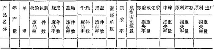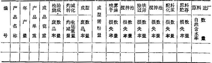 释义 | 物料衡算基本表 1.以原料车间为重点设计车间物料衡算表 (1)半干压压制成型用坯粉料加工为重点的物料衡算表此例采用粉状原料进厂的方式,加工墙地砖产品,见表1-84。 表1-84 原料车间为重点的物料衡算表一 表1-84编写中的要点为: ①上述各工序均以干基作为物料衡算的基础。 ②各工序计算出物料应加工数量(单位为t(干基)/年、日、班)后,还应视具体加工物料的形式(如半干粉料、泥浆等)按照设备选型计算所要求的参数,作相应换算。例如,需要进行干物料换算为泥浆重量与泥浆体积的计算。 ③应注意,损失率指工序加工的耗失量在原料车间设计中考虑工业废水泥料回收时,可另作计算;成型工序废品率的坯体可大部分回收利用、若返纳入处理回泥的工序中,该工序应从理论物料衡算需上道工序供应新物料原料量中扣减回泥的这部分数量。 (2)可塑法成型用可塑泥料加工为重点的物料衡算表(参见表1-85a、1-85b) 表1-85a 原料车间为重点的物料衡算表二(电瓷) 表1-85b 原料车间为重点的物料衡算表三(日用瓷) (3)注浆法成型用泥浆料加工为重点的物料衡算表(参见表1-85c) 表1-85c 原料车间为重点的物料衡算表四(卫生瓷) 2.以成型车间为重点设计车间的物料衡算表 (1)釉面砖工厂物料衡算表(参见表1-86) 表1-86 成型车间为重点的物料衡算表一 表1-86编写中的要点为: ①施釉工序,首先根据釉料、灼减量,将瓷釉重换算成为生釉层的重量。然后,仅考虑釉浆损失率计算所需釉浆料量(本表未列出釉浆用量衡算的部分),既可计算实际耗用釉浆量,亦可计算实际需要喷、浇、淋釉操作的釉浆泵送量,两者应取各自经验比值加以核算。 ②成型需粉量,应按压制每件坯体实际需投入工作台的坯粉量进行计算,可取压制成型余粉率经验数据加以换算。 (2)日用陶瓷工厂物料衡算表(参见表1-87) 表1-87 成型车间为重点的物料衡算表二 表1-87编写中的要点为: ①本物料衡算采用成品量 成型加工量各工序按件数计算;成型需泥量以吨位计。 ②成型需泥量应按可塑法成型每件坯体,实际需投入工作台的泥段重量(干基)进行计算,可取可塑成型余泥率经验数据加以核算。 |