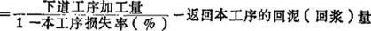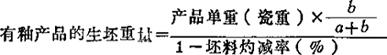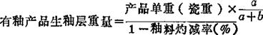 释义 | 物料衡算的基本公式 (一)瓷件重量转为生坯重量的计算公式 1.无釉产品生坯重量 2.有釉产品生坯重量 式中 a——瓷釉重量所占比例; b——该产品瓷坯重量所占比例。 3.有釉产品生釉层重量 式中 a——瓷釉重量所占比例; b——该产品瓷坯重量所占比例。 (二)仅具有工艺损失率指标工序的计算公式 式中 本工序加工量——指输送到本工序所需加工的物料(或半成品)量; 下道工序加工量——指输送到下工序工位上的本工序合格品数(也即下道工序应加工的物料(或半成品)量); 本工序损失率——指以本工序加工量为基数,包含本工位损失及由本工位至下道工序之间运输损失总和为子项的损失百分率指标。 例如: (三)具有工艺余泥(余粉或余浆)及工艺损失率复合指标工序的计算公式 1.本工序需供泥料量 式中 本工序理论加工量——系指根据生坯重量及工艺损失率所衡算的工序应加工量; 本工序工艺余泥量——指泥段(或浇注用泥浆、喷釉用釉浆)总需要量与本工序理论加工量(去掉余泥、空去余浆割掉浇注口余泥、喷到坯体上粘附到半成品的釉层的重量)之重量差值; 工艺余泥率——系以成型后去除余泥或空去余浆割掉浇注口余泥的半成品重量(即工序理论加工量衡算所采用的半成品重量值)作为基数,而实际泥段(实际浇注泥浆)重量与该半成品重量之差值作为子项,所得的百分比。例如: W泥段——实际泥段重量; W坯——成型半成品重量。 2.本工序工艺余泥量 本工序工艺余泥量=本工序理论加工量×工艺余泥率(%) 式中 工艺余泥率——以成型坯体重量作为母项、泥段减去成型坯体重量的差值作为子项。 (四)具有工艺损失率及处理回泥量复合指标工序的计算公式 本工序需供物料量=本工序加工量-返回本工序的回泥(回浆)量 (五)物料衡算基本公式的变换 1.变换式 式中 W1——本工序加工量; W2——下道工序加工量; x:%——本工序开始加工,至运送到下道工序工位上,此段范围工艺损失量作为子项,本工序加工量作为母项的本工序损失率,单位为百分率(%); x1——代表该工序损失率百分比的子项数值。 2.对于已知各工序损失率及最后一道工序成品数量,求第一道工序加工量的计算公式,可用下式表达为: 式中 W1——第一道工序应加工量(按生产流程顺次排列的工序); xn%、xn-1%……x1%——第n道工序逆至第一道工序,各自工序的损失率; xn、xn-1……x1——第n道工序逆至第一道工序,各自工序损失率百分比的子项数值。 |