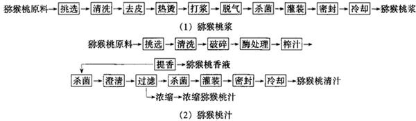 释义 | 猕猴桃汁与浆 (一)猕猴桃的营养成分与加工特性 猕猴桃新西兰称基维果(Kiwi fruit),是我国特产珍贵水果之一,以其丰富的营养而驰名中外。猕猴桃食用品种主要有中华猕猴桃和软枣猕猴桃,其营养成分见表2-1-73。 表2-1-73 猕猴桃果实的成分 猕猴桃中的糖类以葡萄糖、果糖为主。有机酸以柠檬酸为主,其次还有苹果酸、酒石酸。猕猴桃中的氨基酸多达12种,猕猴桃中的维生素C含量相当于柑橘的5~10倍,是苹果、梨等水果的30~40倍,维生素B和维生素P的含量也较高。此外果实中还含有果胶、单宁、蛋白质、色素以及钙、磷、铁、钾等矿物质。成熟的果实中含有猕猴桃碱、叶含槲皮素、山奈醇、对香豆酸以及无色飞燕草花青素、无色花青素。 (二)猕猴桃汁生产技术 猕猴桃可以加工成浆、原汁(清汁)和浓缩汁。猕猴桃清汁成分的测定值大致如下:可溶性固形物14%、总糖9.9%,其中葡萄糖4.9%、果糖4.2%、蔗糖0.8%。总酸1.5%、pH3.2,维生素C85mg/100g。出汁率75%~82%,猕猴桃浓缩清汁的浓度可达75°Bx。猕猴桃清汁与浓缩汁、猕猴桃浆的生产工艺流程如图2-1-47。猕猴桃浆或汁宜进行冷冻贮藏。 图2-1-47 猕猴桃浆和汁生产工艺流程图 (三)生产要点 1.挑选与清洗 制汁用的猕猴桃必须是成熟、风味较佳的果实,应剔除病虫果和腐烂果,但形状大小不限。将果实表面附着的沙土等污染物清洗干净。带皮加工时,猕猴桃要用10mg/kg的含氯水彻底清洗。 2.酶处理 猕猴桃例如用锤式粉碎机破碎后的果浆比较黏稠,虽有少量的自流汁,但榨汁困难。为了提高出汁率,果浆需进行酶处理,使果胶分解,降低果浆的黏度。可以使用果胶酶,酶的添加量一般为100mg/kg,在20~25℃反应2~3h。榨汁前还可添加1%~2%的纤维物质作助滤剂。静置约1h后再行榨汁。 3.澄清与过滤 榨出的猕猴桃汁在15~25℃下静置10~12h,使部分果胶酶继续分解果汁中的果胶,降低果汁的黏度,同时使大部分悬浮物质包括叶绿体沉淀下来,使浑浊的绿色果汁变为微浑浊的黄绿色果汁。 初步澄清的果汁中含有约2%的可溶性蛋白质,蛋白分解酶猕猴桃碱就是其中的重要成分。这些蛋白质在35℃或更高一些温度下就要出现沉淀现象,大大影响汁的质量。去除蛋白质的有效方法是将果汁加热,在杀菌的同时,使果汁中的蛋白质发生凝聚并沉淀下来。果汁杀菌加热条件88~90℃,保温5min,加热后迅速冷却至30~40℃,在汁中添加硅藻土(用量2%~5%质量浓度)进行过滤,得到清汁。 另一种使蛋白质变性的方法是在破碎前对猕猴桃进行热烫处理,将整果放入90~95℃热水中,5~10min后进行破碎,冷却后榨汁。 另一方面,与通常果汁澄清方法一样,使用澄清剂,例如在猕猴桃果汁中添加700~750mg/kg的膨润土和200~250mg/kg的硅胶,对去除蛋白质有一定作用,但对猕猴桃汁来说,使用澄清剂不能完全避免加热引起的沉淀现象。 4.香气物质的回收 猕猴桃香气物质的回收可以在果汁杀菌处理和使果汁中蛋白质发生变性的加热阶段进行。香液浓缩倍数一般150~200倍。 5.猕猴桃浆的制造 与猕猴桃汁生产不同之处,猕猴桃浆采用热打浆方式。在打浆前先行清洁去皮。通常用碱去皮法,将清洗好的猕猴桃果在10%~15%的NaOH溶液中煮45~90s,至皮黑,在水中搓动去皮,并用0.1mol/L的HCl中和5~10min后用清水冲洗。 打浆前的热烫条件与汁的加工相同,热烫目的主要是为了破坏氧化酶的活力,抑制维生素C的氧化,有利于保存维生素C。一般用双道打浆机打浆并去子。打浆时可添加适量的水。 由于猕猴桃种子中含有较多的猕猴桃碱,这种物质有明显的麻痒味,因此打浆时将子去除干净是保证产品风味纯正的关键。 |