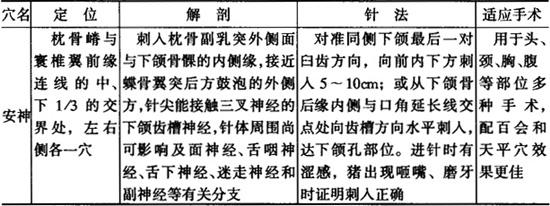 猪体针麻醉穴位