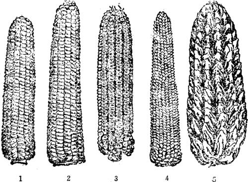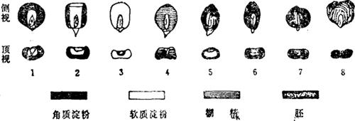 释义 | 玉米的植物学分类及其形态特征 玉米(Zea mays L.)是禾本科中玉米属的玉米种。在玉米属中主要有一个玉米种。按其籽粒形状、胚乳性质与结构,以及稃壳有无,可分为8个类型或亚种。 1.硬粒种(Zea mays var indurata)(Flint corn) 又称为燧石种及普通种。果穗一般呈塔形,籽籽带圆,外皮坚硬,顶端和四周为角质胚乳,仅中央小部分为粉质,故籽粒外表透明,品质优良,产量较高而稳定;并且有早熟、耐寒、适应性强等特点,是我国栽培最多的一种。淀粉含量达56%-75%,蛋白质含7.7%-14.8%。 2.马齿种(Zea mays var indentata)(Dent corn) 植株高大,果穗长,呈圆筒形,籽粒扁平而长,籽粒中央及顶上部为淀粉质胚乳,四周为角质胚乳。成熟时籽粒顶端的粉质淀粉较周围的角质胚乳先干燥,顶端凹陷为马齿状。其凹陷的程度因品种而不同。籽粒品质较差,一般产量较高,生产潜力大。在我国北方栽培较多。籽粒淀粉含量60%-63%,蛋白质含量为8%-13.5%。 3.粉质种(Zea mays var.amylacea)(Flour corn) 又称为软质种。其株形、穗形、粒形等性状都与硬粒种相似,缺少角质胚乳,几乎全由粉质胚乳组成。粒圆且软,无光泽,吸湿性强,粉质差,产量低。我国很少栽培。淀粉含量55%-88%,蛋白质含量6.9%-12.1%。 4.甜味种(Zea mays var.saccharata)(Sweet corn) 又称甜质种和甜玉米。植株矮小,多叶,多分蘖,果穗苞叶长,在胚乳中含有较多的糖分与水分,成熟时籽粒因失水而皱缩,坚硬而透明,多为角质胚乳,少为粉质胚乳。成熟早,产量不高。淀粉含量为25%-37%,水溶性多糖含量为19%-31%,蛋白质含量为12.8%,籽粒胚大,油分含量达8.1%。 5.蜡质种(Zea mays var.ceratima)(Waxy corn) 又称糯玉米。籽粒不透明,坚硬平整,无光泽。其淀粉呈蜡状,水解后很易形成胶粘状的糊精。成熟早,产量不高。该种原产我国,故有中国玉米或中国蜡型种之称。淀粉含量为60%。 6.爆裂种(Zea mays var.everta)(Pop corn) 是较原始的一种。植株矮小,穗型不大,籽粒小而坚硬,呈圆形,顶端微突,全由角质胚乳组成,品质甚佳,产量不高。籽粒在加热时由于淀粉粒内的水分遇到高温形成高压蒸汽而爆炸,使籽粒胀开如花,体积可比原来大20-80倍。其淀粉含量为63%-72%,蛋白质含量为10%-14.5%。 按籽粒顶端形状可分为尖顶型与圆珠型两类。我国西南山区有少量爆裂种栽培,系属圆珠型或珍珠型。 7.甜粉种(Zeaに mays var.amyleo-saccharata)(Sweetflour corn) 籽粒上半粒是属甜型的角质胚乳,似甜味种。下半粒为粉质胚乳,又似粉质种。因此,它定介于甜味种与粉质种的中间类型。 8.有稃种(Zea mays var.tunicata)(Pod corn) 是最原始的一种,茎叶多茸毛,且明显,每粒籽粒外面有内外颖及护颖构成的壳包着,壳顶常具芒。有高度的自花不孕的特性,雄花序较发达,常着生有种子。角质胚乳环生籽粒四周外层,外皮坚硬,常呈各种不同颜色。 其各种果穗形态见图18-1。 图18-1 各种玉米亚种的果穗形态 1.硬粒种;2.粉质种;3.马齿种;4.爆裂种;5.有稃种 各种类型的籽粒的形状和剖面构造见图18-2。 图18-2 各种玉米类型籽粒切面图 1.硬粒种;2.马齿种;3.粉质种;4.蜡质种;5.有稃种;6.爆裂种;7.甜粉种;8.甜味种 各种玉米类型的检索表摘引如下: A.籽粒包在较长稃颖内………………………………………………有稃种 AA.籽粒外露,稃壳极短: B.籽粒在加热时发生爆裂,果皮坚厚,全部为角质胚乳,籽粒较小………………………………………………………………爆裂种 BB.籽粒在加热时不会爆裂: C.籽粒无角质胚乳,全部为粉质淀粉,粒顶不凹陷………软粒种 CC.籽粒含角质胚乳: D.干时皱缩。全部为角质透明胚乳………………………甜味种 DD.干时不皱缩,粒面平滑: E.胚乳由78%枝链淀粉,及22%直链淀粉组成。 F.角质胚乳分布在籽粒的四周,籽粒中心至粒顶为粉质,胚乳干时,籽粒顶端凹陷呈马齿状……………………马齿种 FF.角质胚乳分布在四周及顶端,包围着内部的粉质胚乳,干时籽粒顶部不凹陷…………………………………硬粒种 EE.胚乳全部为枝链淀粉组成,角质与粉质胚乳层次不分,籽粒不透明,为蜡状,……………………………………蜡质种 EEE.胚乳多含糖质淀粉………………………………………甜粉种。 【参考文献】: 〔1〕西北农学院主编(1979),作物育种学,农业出版社。 〔2〕浙江农业大学编(1961),作物栽培学,上海科学技术出版社。 〔3〕吉林省农科院和吉林省种子公司编着(1980),农作物种子与育种,吉林人民出版社。 〔4〕菲尔索娃着(1958),种子检验和研究方法,农业出版社。 〔5〕柯兹米娜着(1960),种子学,人民教育出版社。 〔6〕颜启传等(1986),杂交玉米吉单101及其亲本自交系种子真实性鉴定和纯度测定技术的研究,《种子》,1986年第5-6期第12-15页。 〔7〕李继耕等(1979),同工酶与玉米杂种优势研究,遗传3∶8-11。 〔8〕李继耕等(1980),栽培玉米起源的同工酶研究,遗传学报,3∶223-230。 〔9〕颜启传等(1993),杂交玉米丹玉13号及其亲本自交系的同工酶鉴定,浙江农业大学学报,1993年第3期第72-75页。 〔10〕R.W.Jugenheimer(1976).Corn improvement,Seed production and uses.Awiley-lnter—Science publication John willey & Sons. 〔11〕ISTA Secretary(1975),Testing for genuinenoss of Cultivar,A°S—N.L.H,Norway. 〔12〕J.Pauksens(1975),Method for Determination of Cultivar trueness and Purity in Maize(Zea may S.L).Seed Sci.& Techn01.Vol:3(1). 〔13〕W.J.Robert(1976),Corn improvement,Seed Production and uses.Awiley—lnterscience Publication. 〔14〕周展明等(1992),玉米