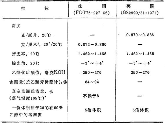 释义 | 玫瑰木油 将生长在巴西、秘鲁和法属圭亚那的玫瑰木〔Aniba rosaeodora varamazonica(Ducke),A.Parviflora(Mez.),Ocotea caudata(Mez.),Protium altissimum(March)〕的木质部分预先粉碎,浸泡,再经水蒸气蒸馏可获得此油。得油率为1.2%。 玫瑰木油是一种无色或淡黄色液体,具有木香、花香和樟脑气息。 关于玫瑰木油的成分研究得不多。已知其含有脂肪族萜烯烃、双戊烯、桉叶油素(达10%)、甲基庚烯醇、橙花醇、香叶醇、l-和d-芳樟醇、α-松油醇、甲基庚烯酮、异戊醛。 对甲氧基苯乙酮、Ро3иaнол〔2,8-二甲基-5-异丙基双环癸烷(5,3,0)的衍生物〕、Розивeнол——组成为C15H26O之叔醇,Лeндривeнол——组成为C15H24O之仲醇、组成为C15H22O2的羟基酮、Оксирозенон和组成为C16H27O的Роcrepон。 各地产的玫瑰木油性质见表10.1,各国标准对玫瑰木油的质量要求见表10.2~10.4。 表10.1 各国产玖瑰木油的物理化学指标 表10.2 根据各国标准巴西玫瑰木油的质量指标 *这一指标的测定方法见附录第229页。 表10.3 各国玫瑰木油的质量指标(根据美国标准EOA№2135) *这一指标的测定方法见附录第232页。 表10.4 根据印度标准IS 3227-1965各国生产的玫瑰木油质量指标 *如果大气压高于760毫米汞柱的话,则测定蒸馏温度时,可用修正系数按公式t=tc+0.037(P-760)进行换算,式中P为测试时的大气压力;tc为标准中规定的馏出温度〔原文的计算公式为t=tc·0.037(P760),疑有误——译者注〕。 ИCО TК54№3761-76对巴西产玫瑰木油的质量指标规定如下: 相对密度,克/厘米3,20°/20℃ 0.872~0.887 折光率,20℃ 1.462~1.468 旋光角,20℃ -4°~十5° 乙酰化后酯值,毫克KOH 250~270 一份体积油于20℃时在60%乙醇中的溶解度 5倍体积 玫瑰木油能以任意比例溶解于苯甲酸苄酯、邻苯二甲酸二乙酯、植物油和丙二醇中,微溶于甘油,在矿物油中溶液呈乳光。在弱碱存在下,玫瑰木油较为稳定,但在有机酸存在下不稳定。 在测定玫瑰木油质量时,须将其分馏。据资料报道,天然的巴西玫瑰木油,其馏份组成是:沸点在100℃以内的物质占1.2%;100~194℃的占4.3%;195~205℃的占85.8%;残余物为8.7%。 将沸点为195~203℃之馏份进行精馏时,芳樟醇的得率应不低于70%。 常用含有樟脑的芳樟油伪造玫瑰木油。 玫瑰木油宜包装在玻璃、白铁皮和铝制容器里。短期存放可用铁制容器包装。在温度不高于15℃条件下,存放在避光而又凉爽的库房内。 玫瑰木油可直接用于肥皂和化妆品加香,或用来单离芳樟醇。 苏联对进口的玫瑰木油的技术条件(TY)尚未制订。 |