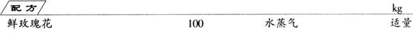 把鲜玫瑰花放到蒸馏锅中,通入水蒸气进行蒸馏,提取玫瑰油。提油率为0.015%~0.04%。本品主要用于高级香水、香皂、化妆品香精的调配;也可用于窨萘、浸酒以及制成玫瑰酱供制做糕点用。