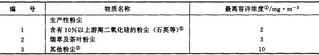 释义 | 环境保护和职业安全卫生 (一)环境保护 1.一般规定 (1)厂区总平面布置应做好绿化和满足环境保护要求。烟尘排放应符合国家标准,设计时应采取措施减少烟尘对周围环境的影响;炉渣、烟土粉尘、废纸、生活垃圾等废物应综合利用或另做处理。噪声防治应首先从声源上进行控制,不易控制时,应采取有效的隔声、吸声、消声等减噪措施。在总平面及车间布置上,宜将噪声源集中,并避开主要工作和生活场所;噪声控制应符合现行的《城市区域环境噪声标准》,并符合现行的《工业企业设计卫生标准》(GBJ87)的有关规定。 (2)按照卷烟工艺规范控制在制品的含水率,防止烟叶的造碎与大量粉尘的产生。对于打叶、切丝、烘丝及卷烟工序,应配置必需的除尘设施,并确保排放空气含尘量符合卫生要求。 (3)设备噪声应作为设备比选的一个重要指标,产生噪声的车间,建筑设计应采取相应的措施。 2.大气环境质量标准 (1)大气环境质量标准分为三级: 一级标准 为保护自然生态和人群健康,在长期接触情况下,不发生任何危害影响的空气质量要求。 二级标准 为保护人群健康和城市、乡村的动、植物,在长期和短期接触情况下,不发生伤害的空气质量要求。 三级标准 为保护人群不发生急、慢性中毒和城市一般动、植物(敏感者除外)正常生长的空气质量要求。 (2)空气污染物三级标准浓度限值列于表10-4-13,详见GB 3095—92。 表10-4-13 大气环境质量标准 注:①“日平均”为任何一日的平均浓度不许超过限值。 ②“任何一次”为任何一次采样测定不许超过的浓度限值。不同污染物“任何一次”采样时间见有关规定。 ③“年日平均”为任何一年的日平均浓度均值不许超过的限值。 ④总悬浮微粒(T.S.P),系指100μm以下微粒。 ⑤飘尘,系指10μm以下的微粒,该项为参考标准。 ⑥光化学氧化剂(()3),1h均值每月不得超过一次以上。 (3)工业企业有害物质排放标准,见表10-4-14。表中未列其有害物质的排放量,可参照本表类似企业。表中所列数据,按平原地区,大气为中性状态,点源连续排放制订。间断排放者,若每天多次排放,其排放量按表中规定;若每天排放一次而时间又少于1h,则烟尘及生产性粉尘、二氧化物,氟化物等物质的排放量,可为表中规定的3倍。详见GBJ4-13《工业“三废”排放试行标准》。 表10-4-14 工业企业有害物质排放标准 注:*系指局部除尘后所允许的排放浓度。 第一类指含10%以上的游离SiO2或石棉的粉尘、玻璃棉和矿渣棉粉尘,铝化物粉尘等。 第二类指含10%以下的游离SiO2的煤尘及其他粉尘。 (4)污水综合排放标准见表10-4-15,详见GB8978-88。 表10-4-15 污水综合排放标准 (二)职业安全卫生 1.一般规定 (1)严寒地区、寒冷地区的食堂宜采用连廊与生产厂房相连接。厂区内宜设置倒班宿舍。生产车间可设置休息吸烟室。宜按《工业企业设计卫生标准》中的多尘环境进行浴室设计。 (2)宜根据卷烟生产特点设置全厂性的医务部门,特别要注意防治上呼吸道感染、眼疾及由噪声引起的心血管系统疾病。应设妇女卫生室。宜设全厂性的幼托哺乳设施。幼托哺乳设施应设在远离烟尘、烟味发散或能采取有效措施减轻其影响的地方。 (3)应使有毒有害物品的储存及使用符合有关规定。 车间高空作业区应设操作和检修平台或采取其他安全措施。 传动装置的外露部分应设安全防护设施。 (4)生产车间内含尘浓度应符合国家标准。 2.生产车间(场所)有关安全卫生标准 (1)车间空气中有毒物质的最高容许浓度(见表10-4-16)。 表10-4-16 生产车间中有毒空气最高容许浓度 注:①表中最高容许浓度是工人工作地点空气中有害物质所不应超过的数值。工作地点系指工人为观察和管理生产过程而经常或定时停留的地点,如生产操作在车间内许多不同地点进行,则整个车间均算作工作地点。 ②含有80%以上游离二氧化硅的生产性粉尘,应力求达到1mg/m3。 ③其他粉尘系指游离二氧化硅含量在10%以下,不含有毒物质的矿物性和动物性粉尘。 (2)噪声控制标准。 ①我国工业企业暂定噪声卫生标准见表10-4-17 表10-4-17 工业企业噪声卫生标准 ②工业企业厂界噪声标准。 各类厂界噪声标准值见表10-4-18,详见GB12348-90。 表10-4-18 工业企业厂界噪声标准等效声级 单位:dB(A) 注:1.各类标准适用范围的划定。Ⅰ类标准适用于以居住、文教机关为主的区域。Ⅱ类标准适用于居住、商业、工业混杂区及商业中心区。Ⅲ类标准适用于工业区。Ⅳ类标准适用交通干线道路两侧区域。各类标准适用范围由地方人民政府划定。 2.夜间频繁突发的噪声(如排气噪声)。其峰值不准超过标准值10dB(A),夜间偶然突发的噪声(如短促鸣笛声),其峰值不准超过标准值15dB(A)。 3.本标准昼间、夜间的时间由当地人民政府按当地习惯和季节变化划定。 (3)城市区域环境噪声标准。城市5类环境噪声标准值见表10-4-19,详见GB3098-93,代替BG3096-82、GB11339-89。 表10-4-19 城市区域环境噪声等效声级标准 单位:dB(A) 注:1.各类标准的适用区域。 0类标准适用于疗养区、高级别墅区、高级宾馆区等特别需要安静的区域。位于城郊和乡村的这一类区域分别按严于0类标准5dB(A)执行。 1类标准适用于以居住、文教机关为主的区域。乡村居住环境可参照执行该类标准。 2类标准适用于居住、商业、工业混杂区。 3类标准适用于工业区。 4类标准适用于城市中的道路交通干线