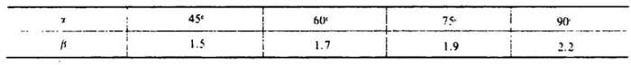 释义 | CMS型(包括ZMS型)埋刮板运输机链条张力和功率计算 1.张力计算 [说明]参考图2-4-2。 式中 T1——垂直式刮板链条绕入驱动齿轮时的张力,即刮板链条的最大张力(N) β——弯道系数 当f′取0.5时,β值见表2-4-15 表2-4-15 弯道系数β e——自然对数的底 x——倾射角(弧度) k0——括板阻力系数,取1.5 L——水平段长度(m) LP——弯道平均展开长(m) H——垂直段高度(m) m——物料流动系数 kc——物料对机槽器壁侧压系数,对于垂直型机槽宽0.6m.机槽高0.32m及链条速度0.44m/s的刮板运输机,其kc=9.9 其它同上 2.所需功率计算 式中 N′——所需功率(kW) T2′——刮板链条绕出链轮时的张力(N) T0——刮板链条的初始张力(N) G、V——含义及单位均同上 |