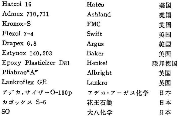 释义 | 环氧大豆油 【结构式】: 组成 大豆油是甘油的混合不饱和脂肪酸酯。脂肪酸主要成分为亚油酸(51~57%),油酸(32~36%),棕榈酸(2.4~6.8%),硬脂酸(4.4~7.3%)。将精制的豆油在酸存在下用双氧水环氧化即可制得环氧大豆油,其化学结构可表示如下。 【释文】: 性质 浅黄色油状液体。平均分子量约为950。相对密度0.985~1.000(25℃)。凝固点-10~5℃。沸点150℃(4毫米汞柱,伴有分解)。闪点280~310℃。着火点310℃,蒸气压<1毫米汞柱(330℃)、0.1毫米汞柱(150℃)。表面张力34达因/厘米(20℃)。膨胀系数0.00071/℃(10~40℃)。折光率1.472(25℃)。加热减量≤0.3%(125℃×3小时)。环氧值≥6%,加热后环氧值≥5%(177℃×3小时)。在水中的溶解度<0.01%(25℃),水在本品中的溶解度0.55%(25℃)。溶于脂肪烃,芳香烃,酮类,酯类,丁醇、高级醇等有机溶剂,微溶于乙醇。与聚氯乙烯的相容性好(见表1-31)。 表1-31 环氧大豆油与树脂的相容性 o=相容 x=不相容 △=部分相容 用途 本品为聚氯乙烯的增塑剂兼热稳定剂。挥发性低,迁移性小,具有优良的热稳定性和光稳定性,耐水性和耐油性亦佳,可赋予制品良好的机械强度、耐候性及电性能。本品适用于各种聚氯乙烯制品,可与聚酯类增塑剂并用,减小聚酯的迁移,与热稳定剂并用有显着的协同效应。 毒性 本品的毒性极低,毒性系数T=1000。大白鼠经口LD50为22.5克/公斤体重,用含本品2.5%的饲料喂饲大白鼠1~2年的长期实验证实,对动物的脏器、生长和行为均无影响,世界卫生组织(WHO)和联合国粮食与农业组织(FAO)的专门委员会提出本品的日允许摄取量为12.5~25毫克/公斤/天。 美国(参见FDA121.2001,121.2514)、英国、法国、联邦德国、日本、意大利、荷兰等国许可本品用于制作食品包装材料。 国内生产厂 天津溶剂厂 江苏常熟第二塑料厂 四川成都溶剂厂(还生产环氧棉子油) 河北省张家口地区化工厂 国外商品名 |