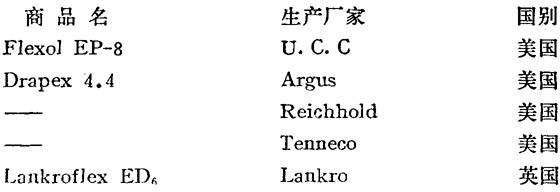 性质 淡黄色油状液体。环氧值>4.1%。碘值<2.5。相对密度0.919~0.924(25℃)。凝固点-13~-15℃,闪点(开杯法)230~232℃。折光率1.4570~1.4584(25℃)。相容性见表1-32。