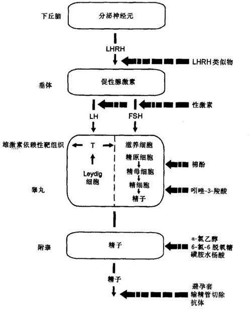 释义 | 现有的男性避孕方法有哪些?新型避孕方法前景如何? 雄激素 GnRH拮抗剂 精子表面抗原抗体 附睾内促精子成熟化合物 依赖激素的避孕方法 曲细精管中精子生成和睾丸间质细胞中雄性激素睾酮的产生,均依赖于垂体促性腺激素。影响睾丸功能的两种促性腺激素是LH和FSH。这些促性腺激素受下丘脑呈脉冲性释放的垂体GnRH调节。实际情况表明睾丸与垂体-下丘脑轴之间有所谓负反馈的精细调节,即男性接受大剂量睾酮或卵巢激素将抑制垂体—下丘脑产生和释放促性腺激素,从而导致精子生成停滞。既往曾联用雄激素、孕激素及雌激素以终止垂体正常功能,即所谓的“药物性垂体切除”。 最近研究表明,男性注射大剂量睾酮可致精液中无精子,这种情况称为无精症,是一种高效的避孕方法。睾酮诱导的无精症仅见于60%~70%的男性白种人,但在中国和印度尼西亚男性中的比例则较高(>90%)。未发展至无精症者绝大多数精子计数极低。正在进行的研究旨在确定严重但非完全性精子生成障碍,能否使绝大多数男性不育。 GnRH的研究,包括模拟(拟似剂)或对抗(拮抗剂)GnRH功能的合成衍生物的开发。给予大剂量拟似剂时最初效应是刺激垂体释放LH和FSH,但其后即抑制这些激素释放,这种现象即为垂体功能下调。既往使用一定剂量的GnRH拟似剂,可使促性腺激素水平下降,然而,诱导无精症效果欠佳。但是,临床研究表明,联用GnRH拮抗剂和雄激素易于诱导无精症,其成功率高于既往任何激素疗法。在认识该方法的真正潜力之前,应进一步扩大研究基数。应用GnRH拮抗剂疗法必须牢记两大问题:首先,拮抗剂可致性欲丧失,故雄激素替代治疗是必需的;其次,目前拮抗剂产品价格昂贵,难以在实际避孕工作中应用。 除激素药物方法外,目前正致力于应用GnRH和FSH来源的疫苗作为男性避孕措施。这些方法正处于临床研究早期阶段,尚难知其全面应用的具体时间。 直接抑制精子生成 偶然发现曲细精管上皮细胞内快速分裂的精细胞对一系列化学物质特别敏感。可惜的是这些化学物质不具睾丸特异性,也可影响其他器官而致全身毒性。 棉酚是被了解最多直接影响睾丸的药物,为棉籽油中的黄色色素。中国及其他国家已对其进行了深入的研究。该药安全范围较小,故应严加控制剂量。个别应用该药者,钾代谢和肾功能受到影响。而且,长期使用后有相当比例的男性不能再育。 Indinopyridines代表一类能迅速破坏精子生成而不影响雄性激素产生的药物,正进行动物模型实验,以测定这些化合物作用的特异性及可逆性。目前尚不知它们的作用机制。 精子抗原来源的疫苗 精子含有一些体细胞所不具有的特殊化学物质,可借此作为抗原制备疫苗。许多这类抗原产生于精子完全成熟之前的早期阶段,并被释放到曲细精管管腔内。当特异性抗体进入经这些精子成分免疫过的男子曲细精管上皮时,即与早期精子的抗原发生反应,引起免疫性炎症反应。若反应严重,可破坏曲细精管上皮,导致永久性不育。妇女有潜在的抗精子疫苗的受体。免疫后的妇女产生针对精子的抗体,于性交后进入女性生殖道,从而避免卵子受孕。 干扰精子成熟 从曲细精管上皮释放的精子,在附睾内成熟过程中获得某些膜成分。这些物质尚未被充分鉴定。但是,从理论上讲,尽管继续有精子正常产生,针对这些成分进行免疫,可能导致不育(图18-1)。 图18-1 男性避孕的方法 结论 许多专家都在研究实用的男性避孕药物。药物和疫苗措施至今成功甚微。看来在2000年之前难以应用新的男性避孕药。较大的成功可能改进输精管切除术,使其具有可逆性。 【参考文献】: Bemstein ME.Agents affecting the male reproductive system:effects of structure on activity.Drug Metab Rev 1984;15∶941~996. Nieschlag E,Behre HM,Weinbauer GF.Hormonal male contraception:a real chance?In:Nieschlag E,Halbernich UF,eds.Spermatogenesis-Fertilization-Contraception:Molecular,Cellular and Endocrine Events in Male Reproduction Heidelberg:Springer;1992∶447~501. Ray S,Verma P,Kumar A.Development of male fertility regulating agents.Med Res Rev 1991;11∶437~472. Swerdloff RS,Wang C,Bhasins.Male contraception:1988 and beyond.In:Burger HG,de Kretser DM,eds.The Testis,2nd edn.New York:Raver.Press:1989∶547~568. Waites GMH.Male fertility regulation:the challenges for the year 2000.Brit Med BUll1993;49∶210~221. Wu FCU.Male contraception:current status and future prospects.Clin Endocrinol 1988;29∶443~475. |