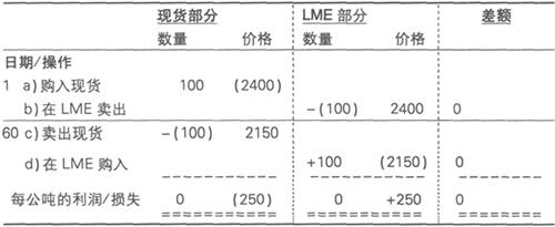 释义 | 现货交易的基本套期保值方法 在第一个例子中,在将从海外购入金属交付给英国的交易者时,会由于价格的波动而存在风险。为此,他们进行远期销售并逐渐演变成了今天的LME——远期清算市场。 商人们仍然从国外买入金属,然后在LME进行套期保值,当他们找到一个现货买主时,便结束套期保值头寸。现货金属价格之间的差额所造成的损失将会由其在LME获得的利润予以抵消,反之亦然。 7.7.1 基础表格的运用 假设条件: 第1天: a)商人从生产厂家那里买入铜,采用CIF定价(成本、保险费和运费),交割地点为欧洲的港口,价格为2400。 b)当商人购买时,他以2400的价格在LME进行卖出套期保值(假设当时不存在期货升水或期货贴水)。 第30天: 发运铜。 第60天: c)商人以当时欧洲港口的CIF价(2150)加溢价将铜出售给消费者。 d)当商人卖出现货时,他在LME以一个同等数量的买入头寸对冲其因套期保值而产生的卖出义务。 例 对例子的评述 第1天:现货多头的风险由LME的套期保值头寸予以防范。 第60天:现货空头的风险由一个新的LME交易头寸予以防范。 在第1天:a)中的现货部分和b)中的LME部分,其二者的价格是相似的。 在第60天:c)中的现货部分和d)中的LME部分,其二者的价格也是相似的。 (注意:现实中的套期保值操作,价格会相互关联,但不会像例子中那样完全相同。) 两个现货价格(a)和(c)之间的差额所引起的损失,由LME价格(b)和(d)之间所产生的套期保值利润加以抵消。 另外,需要注意的是,在本例中,商人并没有打算将货物运至LME,而是在LME进行了相同数量的两次交易。实事上,LME的绝大多数交易并没有发展成为实际的交割。LME的作用是提供价格参考和套期保值的市场。 7.7.2 使用另一种表格 接下来的例子能够更清晰地表现远期结构。假设条件和前例相同: 例 购入现货 = +p 卖出现货 = -p 发运已购入现货 = +D 发运已卖出现货 = -D 在LME买入 = +L 在LME卖出 = -L 对例子的评述 归根到底,交易者的目的就是获取利润。现货的购买价格在LME价格的基础上进行折价或溢价。二者之间的差额所产生的获利将用来支付运输和融资成本,并应该余下一少部分作为交易的利润。期货升水会增加融资成本,LME卖出“套期保值”价格中一般已经含有这部分成本(详见第8.2节)。 |