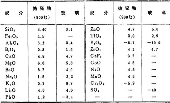计算陶瓷釉的表面张力时,采用搪瓷釉的计算系数,并考虑温度补正,温度补正算法是:温度每升高100℃,从900℃的计算值中减去4个单位,计算举例如下: